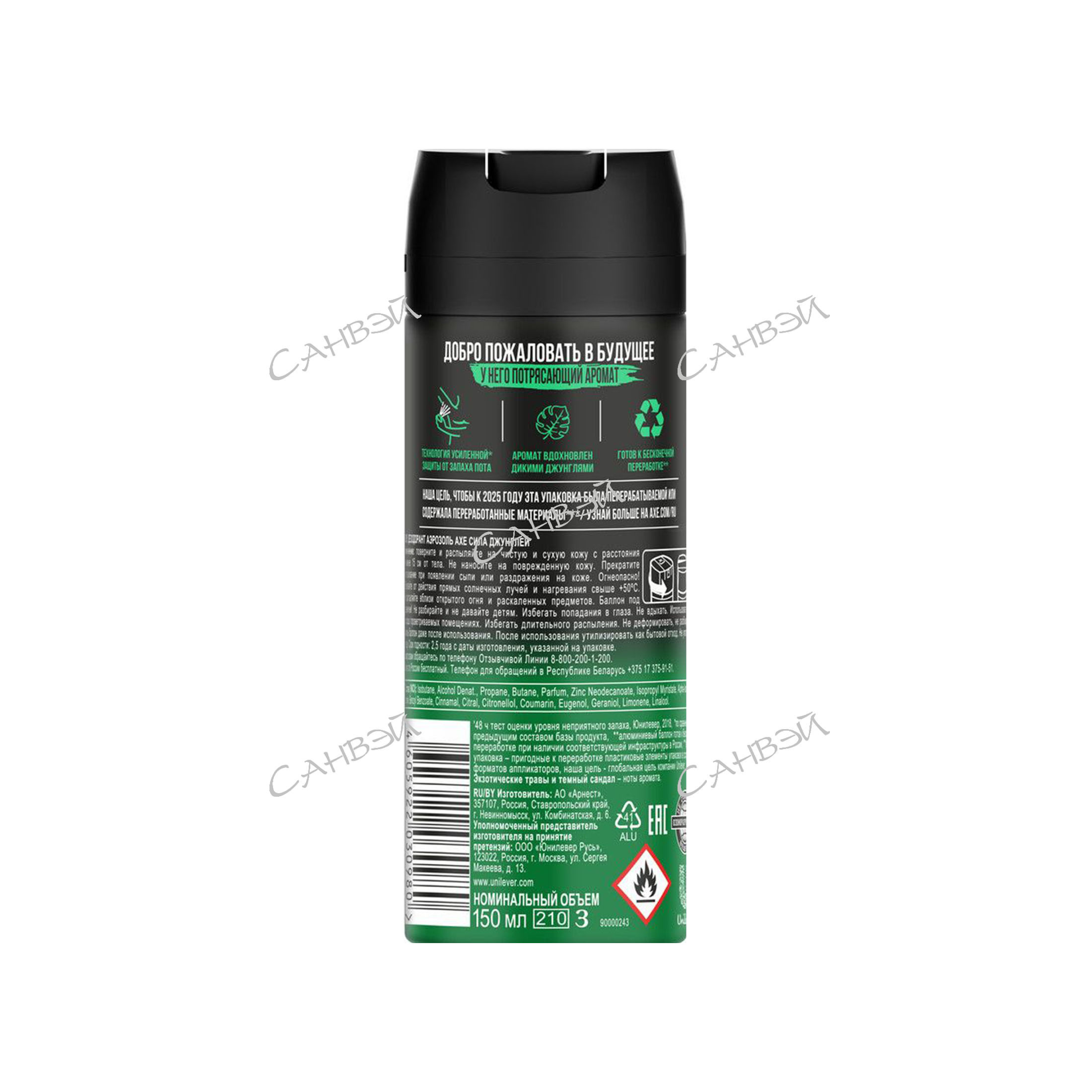 Axe Сила Джунглей дезодорант 150 мл муж защ.48ч нон-стоп д/в.т.кожи экзотич.травы,сандал аэроз. / 6шт / 90000242 / 030980