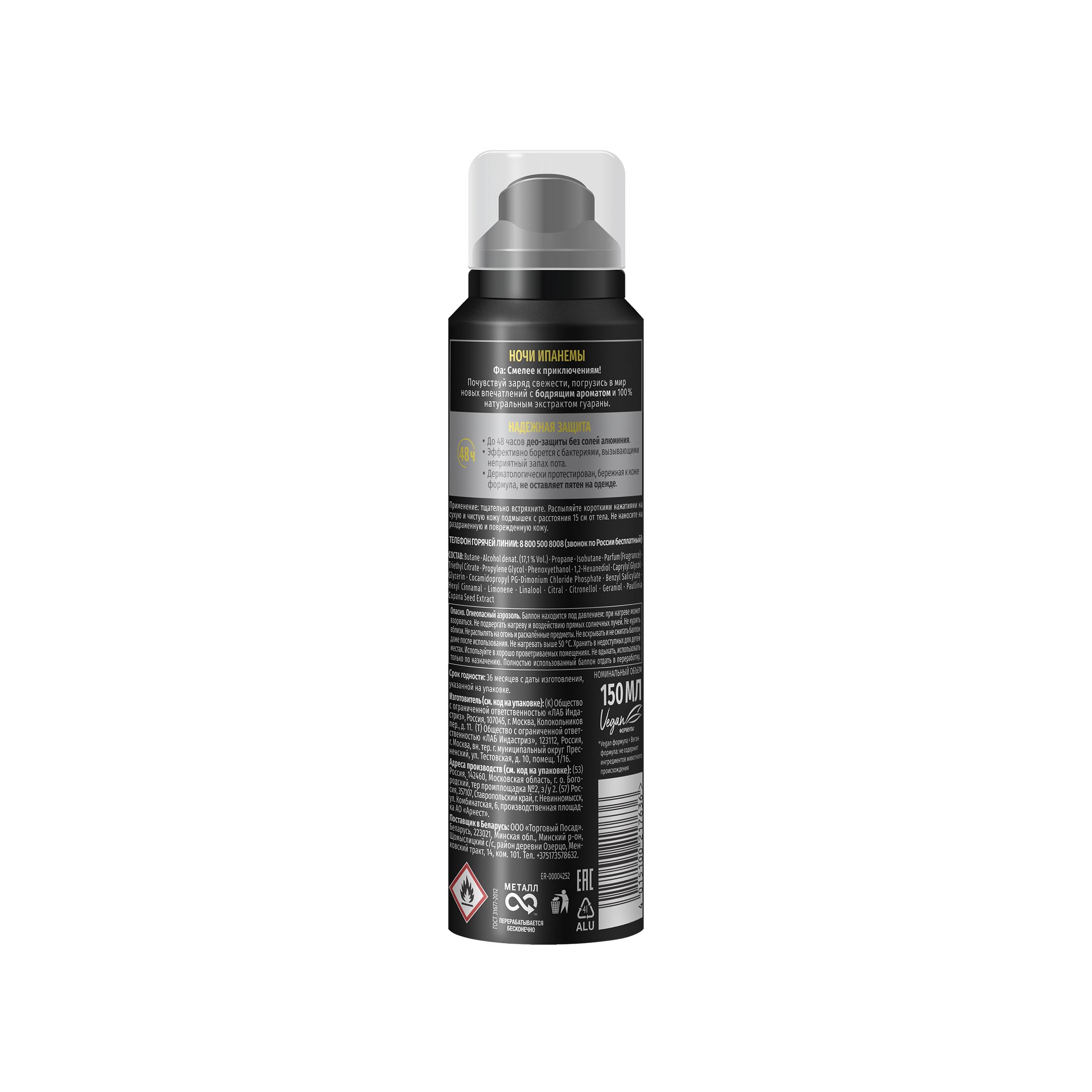 Фа Ритмы Бразилии Ночи Ипанемы дезодорант антипер. 150 мл муж защ.48ч д/в т.кожи бодрящ. аэроз. / 12шт / 2906049 / 217636