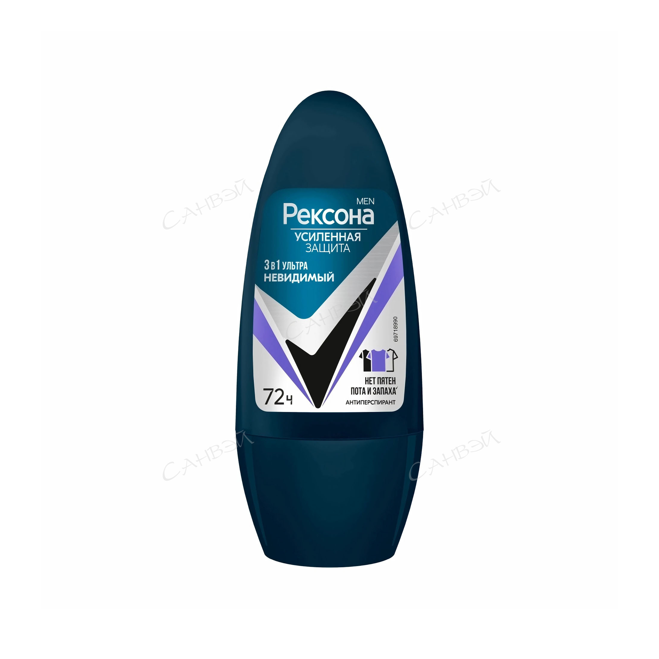Rexona Ультраневидимый дезодорант антиперсп. 50мл муж защит.72ч. д/в тип.кожи ролик 1шт / 6шт / 69718994 / 262721
