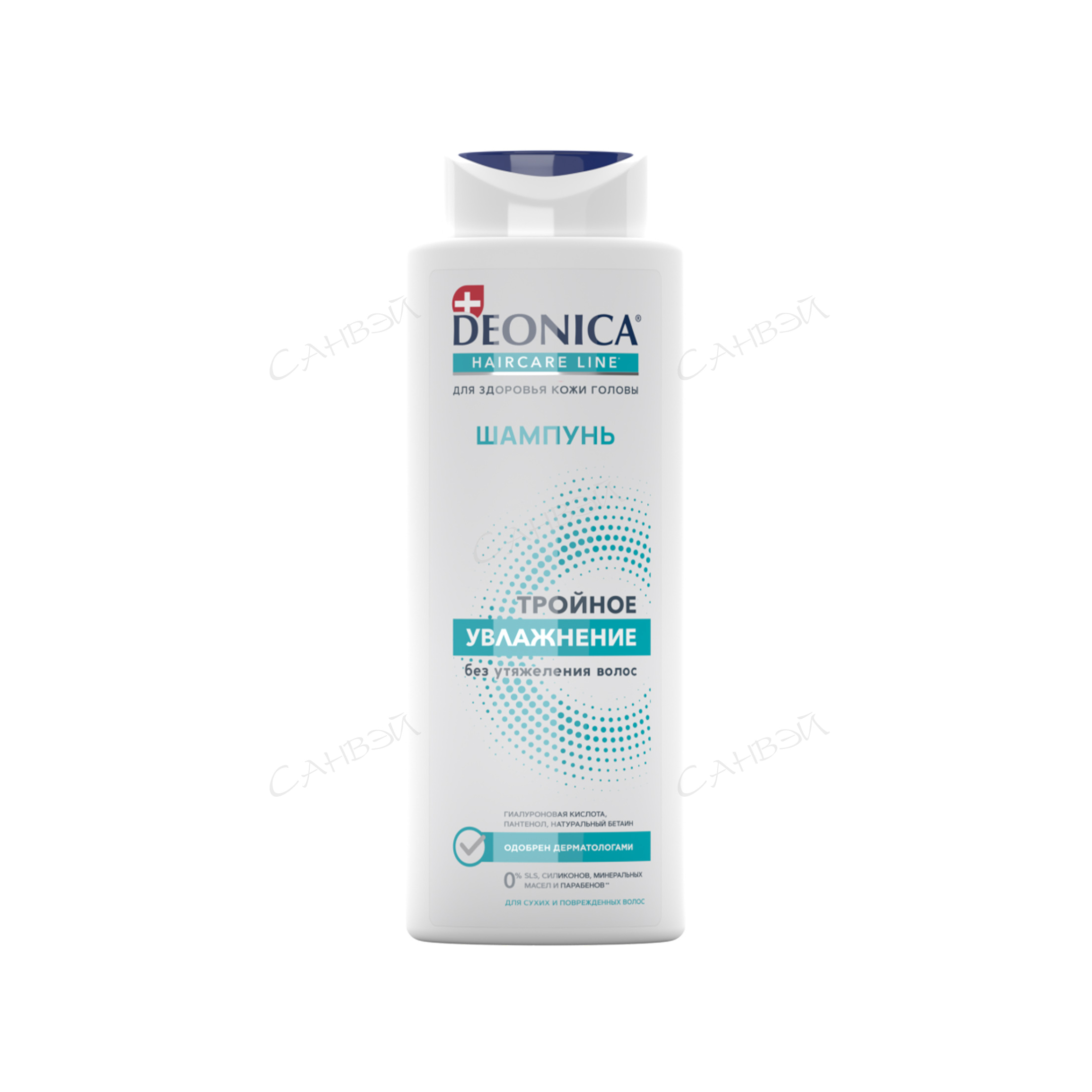 Шампунь Тройное увлажнение Deonica из магазина Санвэй изготовлен специально для тех, чьи волосы нуждаются в дополнительном увлажнении и уходе. Как правило, это обладательницы сухих, вьющихся или кудрявых волос.