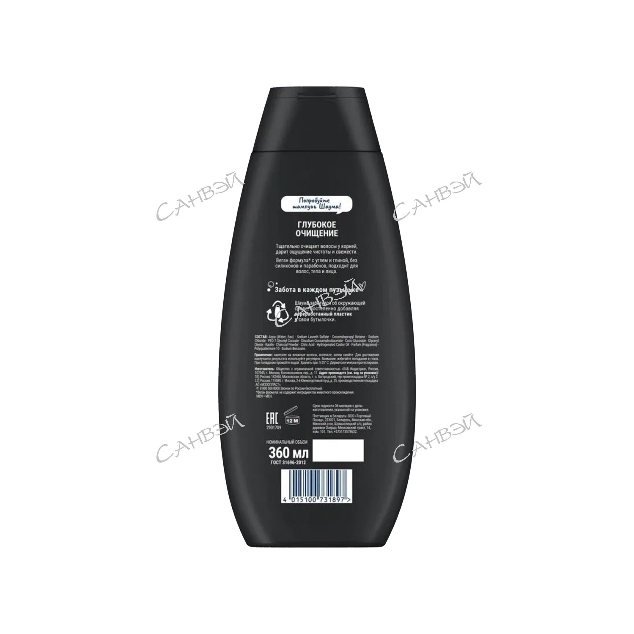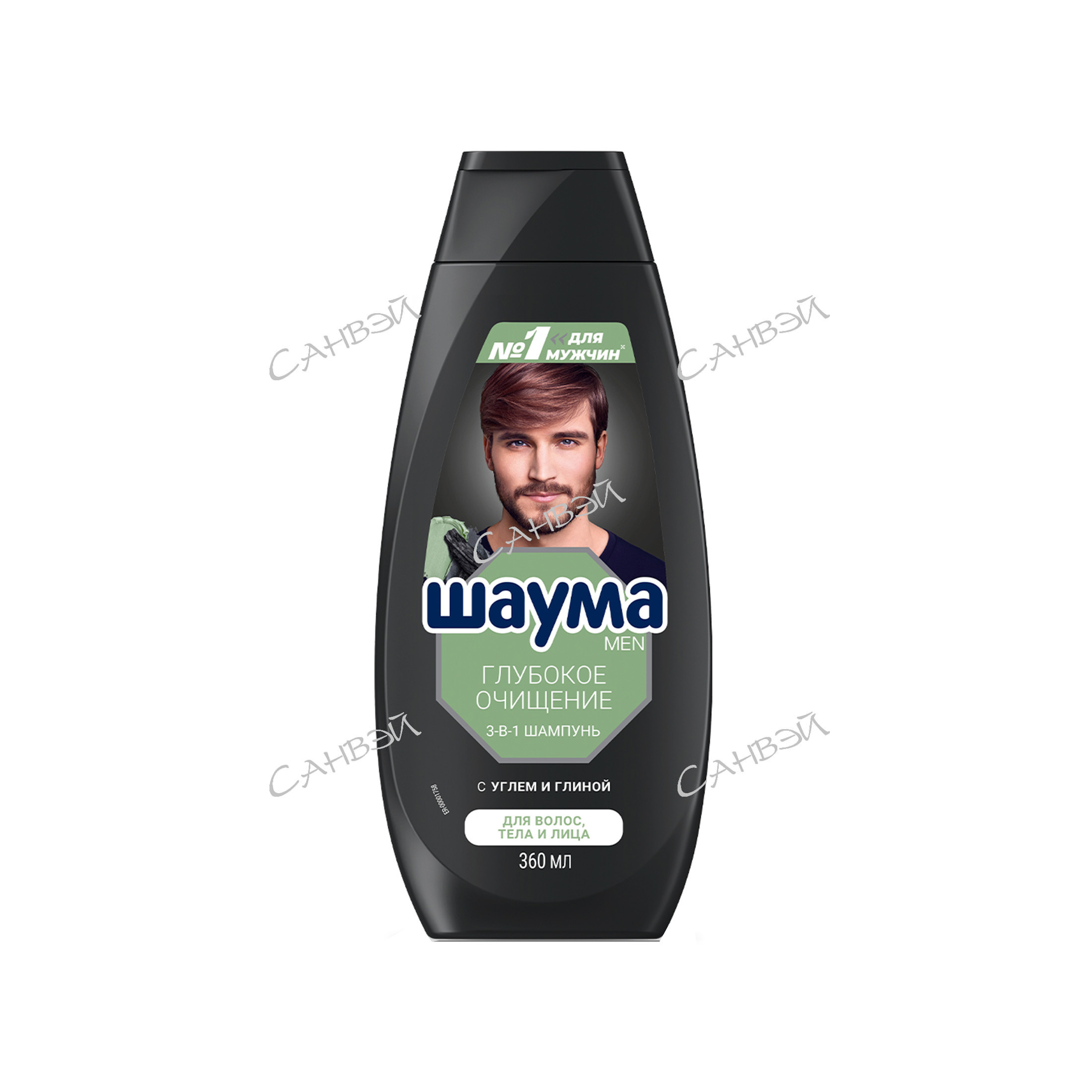 Шаума Глубокое очищение шампунь 3в1 муж д/в тип.вол. уголь,белая глина 360мл флакон 1шт / 10шт / 2906139 / 731897