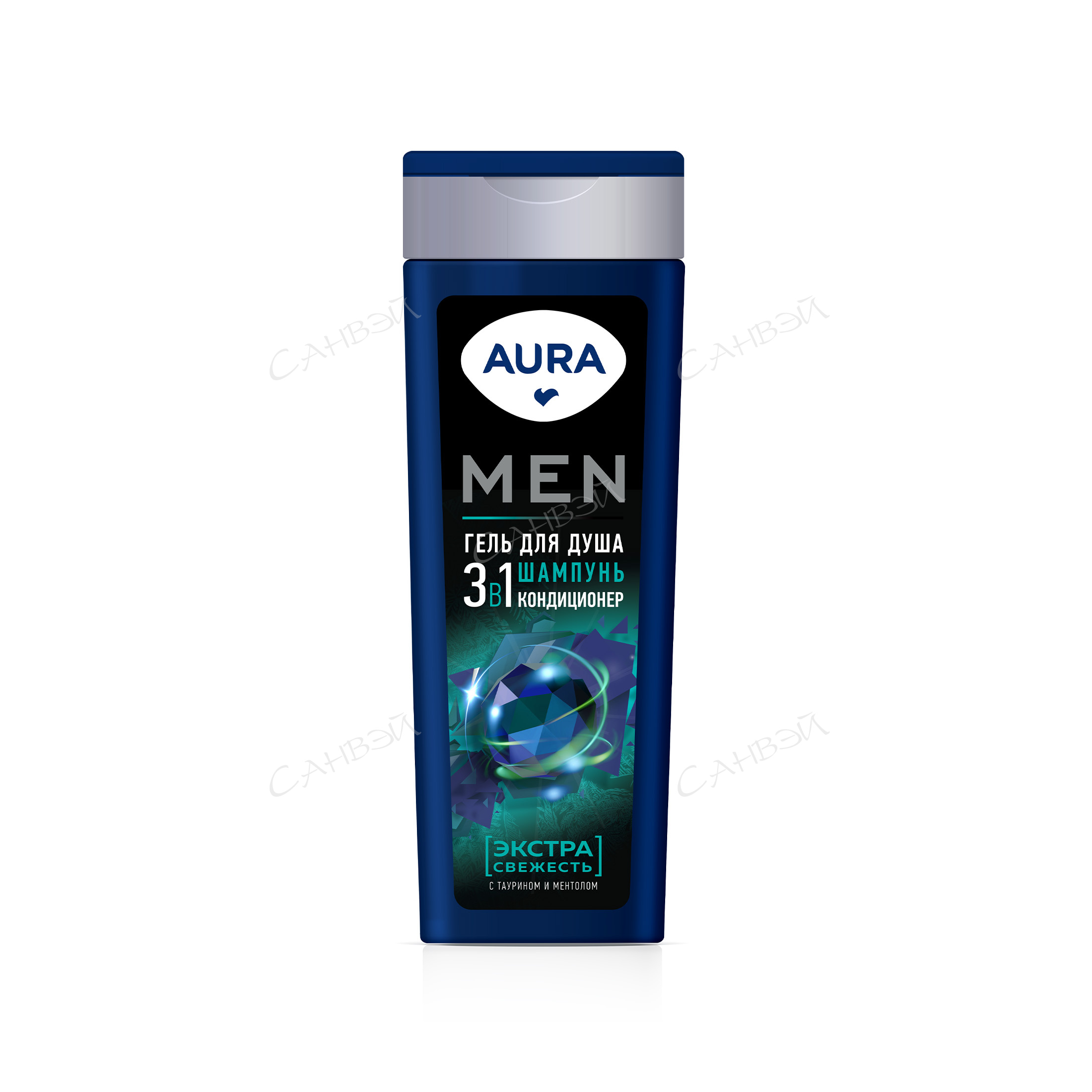 Аура Гель для душа мужской Экстра свежесть 3в1 с таурином и ментолом 380мл в Санвэй: универсальная формула геля для душа 3в1 обеспечит глубокое очищение и уход за кожей тела и волосами.