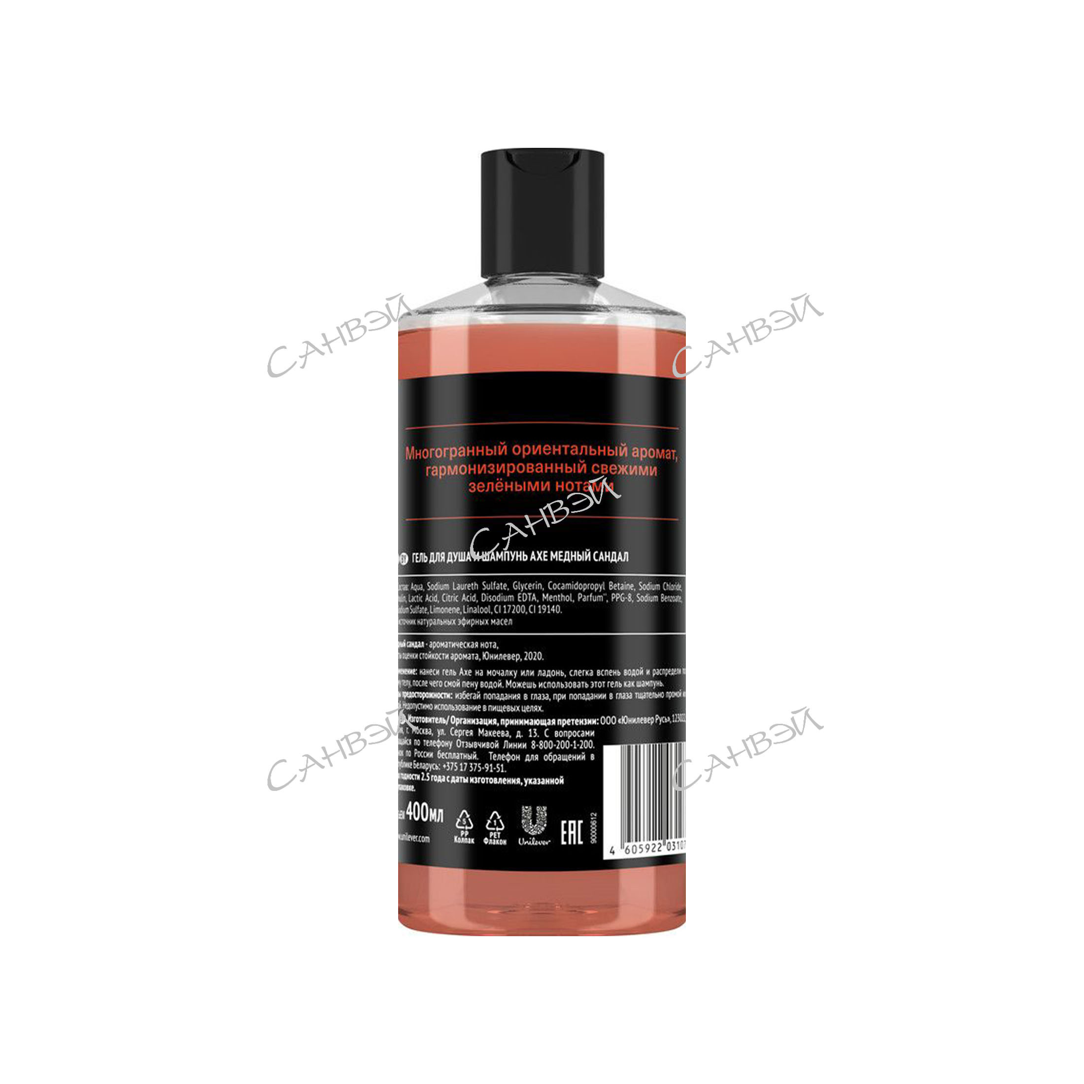Axe Медный Сандал гель д/душа парфюм.2в1 400мл муж очищ. д/в тип.кожи ваниль флакон 1шт / 8шт / 90000313 / 031079