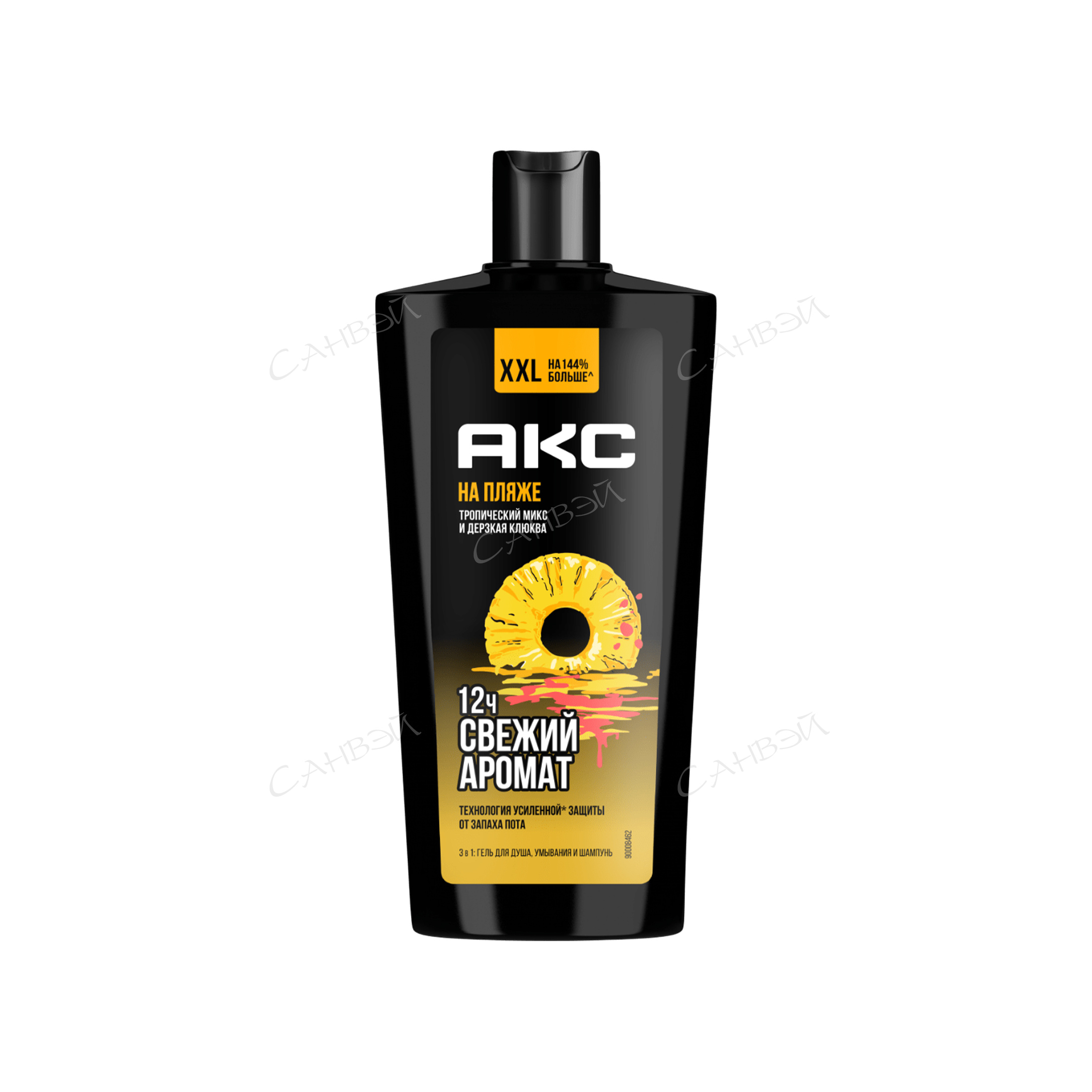 Акс Гель для душа 3в1 На пляже 610 мл одинаково хорош как шампунь для волос, средство для умывания лица и гель для душа. Средство имеет яркий фруктовый аромат, на создание которого вдохновил известный хит популярный тропический коктейль. Притягательные ноты клюквы, сочного ананаса и яркого апельсина передали новому аромату Акс свой страстный характер. Гель для душа 3в1 мужской разработан на основе технологии усиленной защиты от запаха пота на протяжении 12 часов.