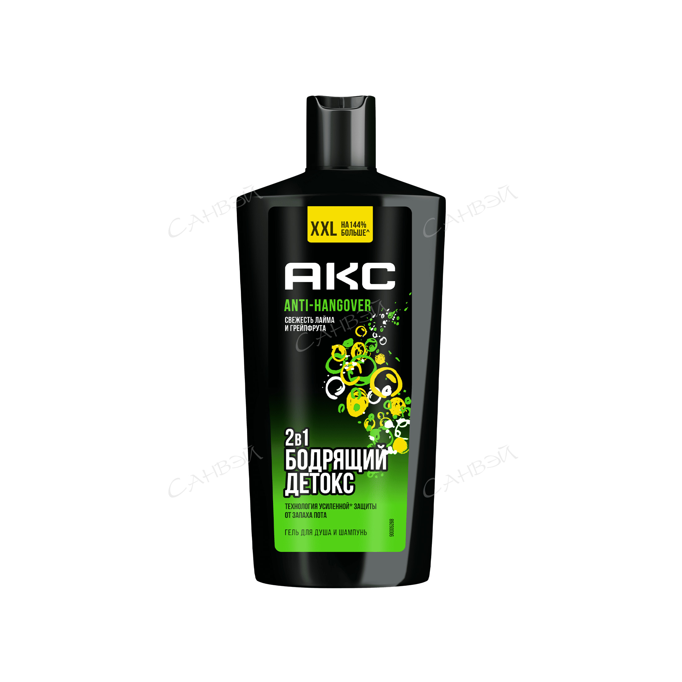 Это самый большой формат шампуня и геля для душа АКС вобъеме 610 мл. Его формула объединяет два компонента для 100% уверенности.