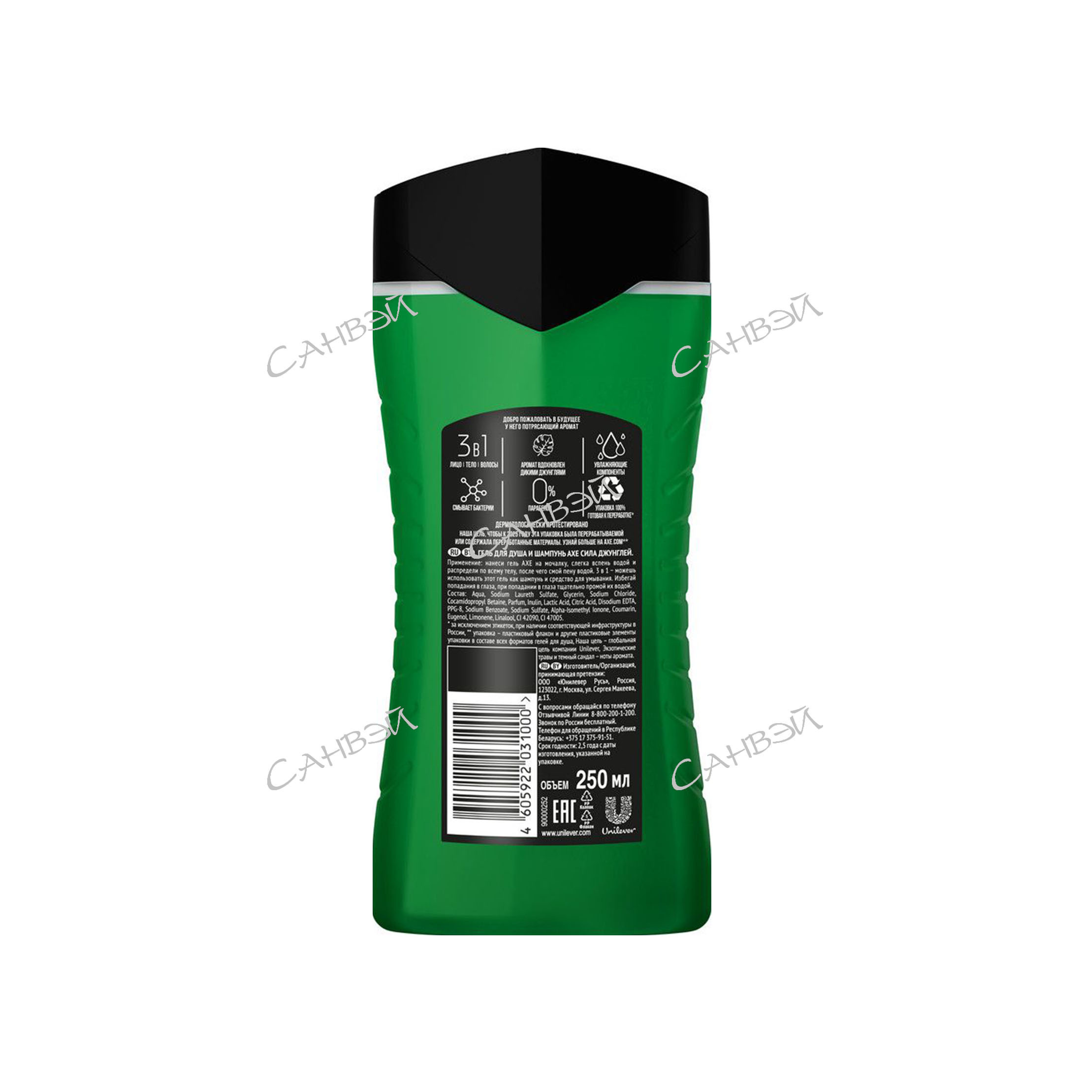 - Акс Сила Джунглей работает и как шампунь, и как гель для душа, и как средство для умывания.