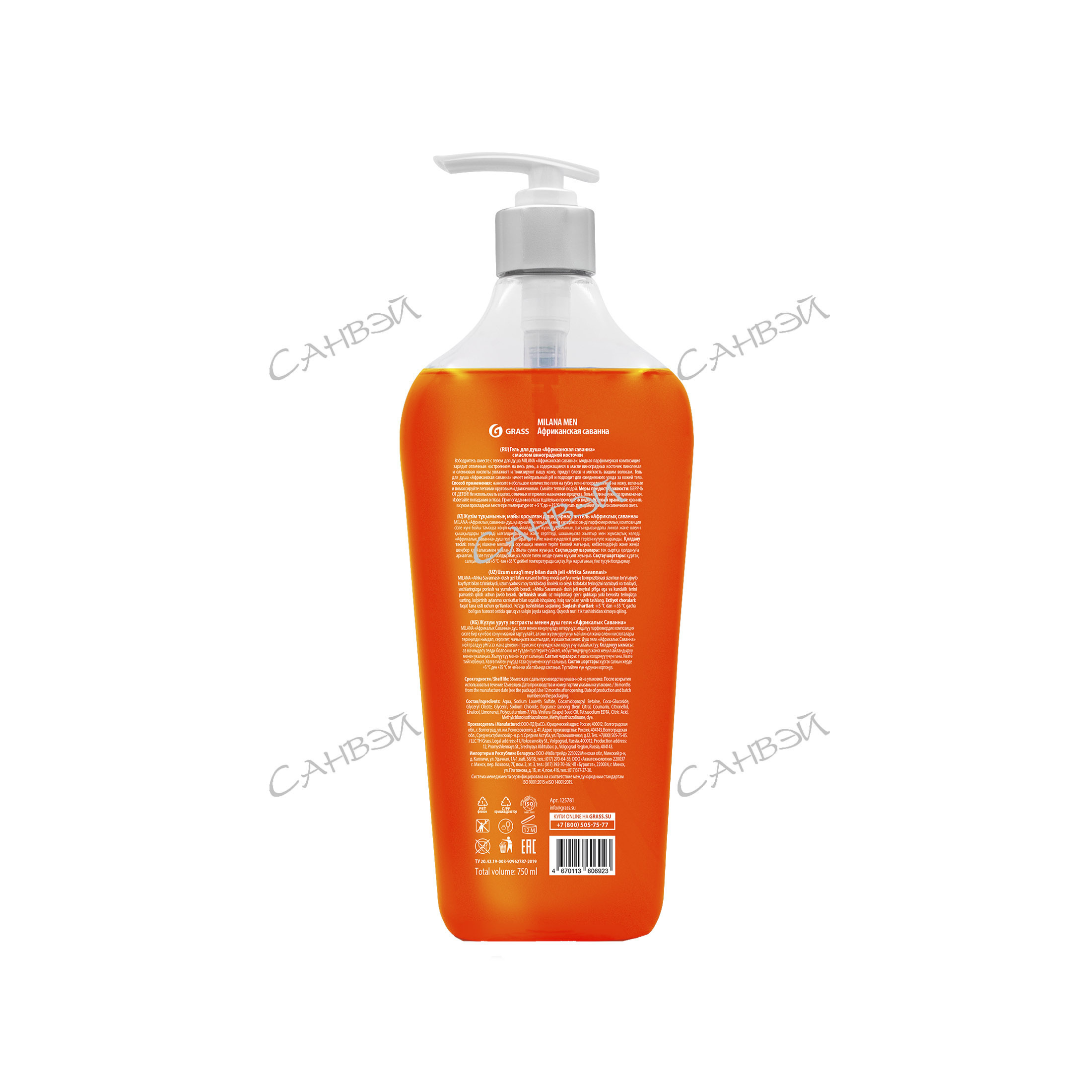 Взбодритесь вместе с гелем для душа MILANA «Африканская саванна»: модная парфюмерная композиция зарядит отличным настроением на весь день, а содержащиеся в экстракте виноградных косточек линолевая и олеиновая кислоты увлажнят и тонизируют вашу кожу и придаст блеск и мягкость вашим волосам. Гель для душа "Африканская саванна" имеет нейтральный pH и подходит для ежедневного ухода за кожей тела.