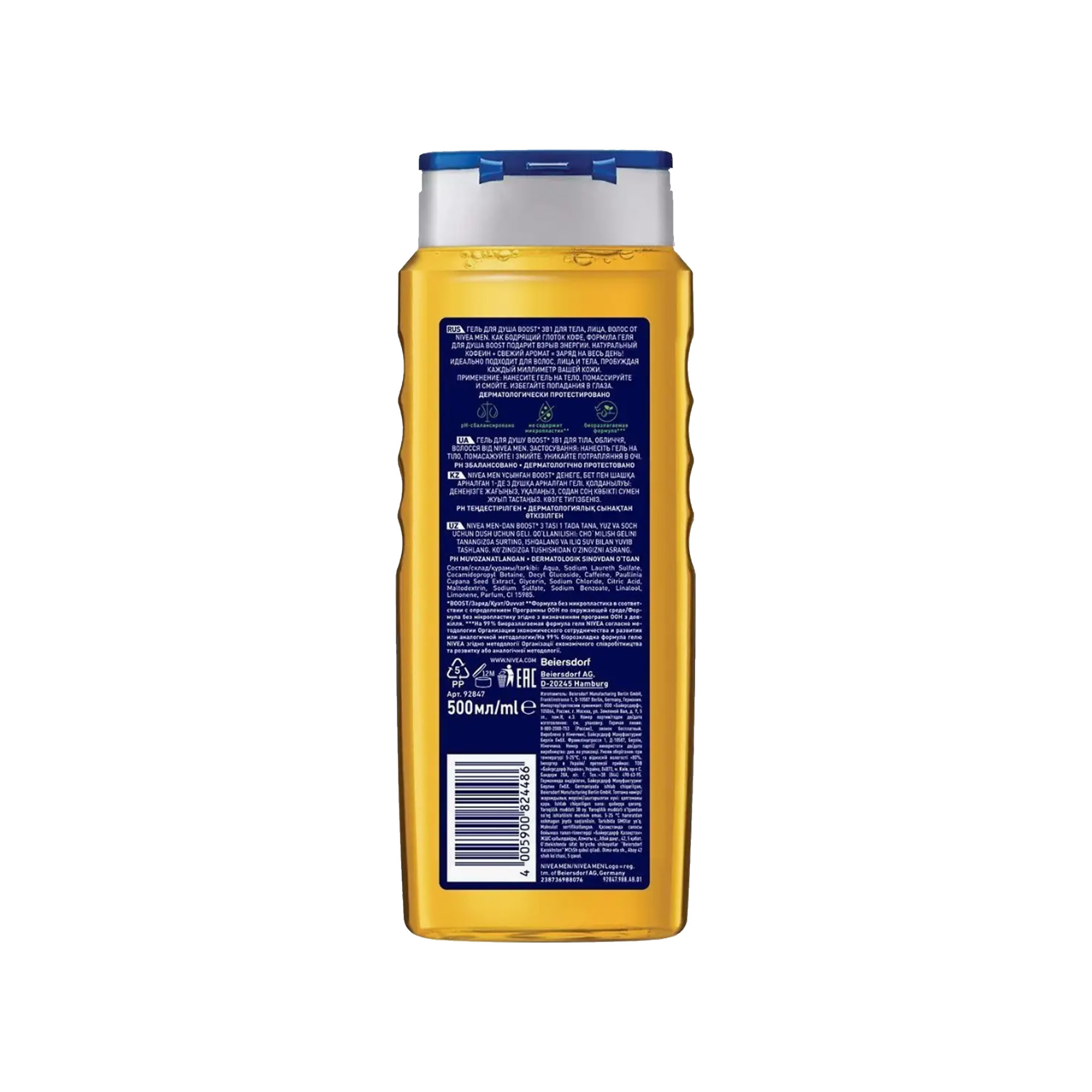 Nivea Boost гель д/душа 3в1 500мл муж очищ. д/в тип.кожи свеж. флакон 1шт / 12шт / 92847 / 824486