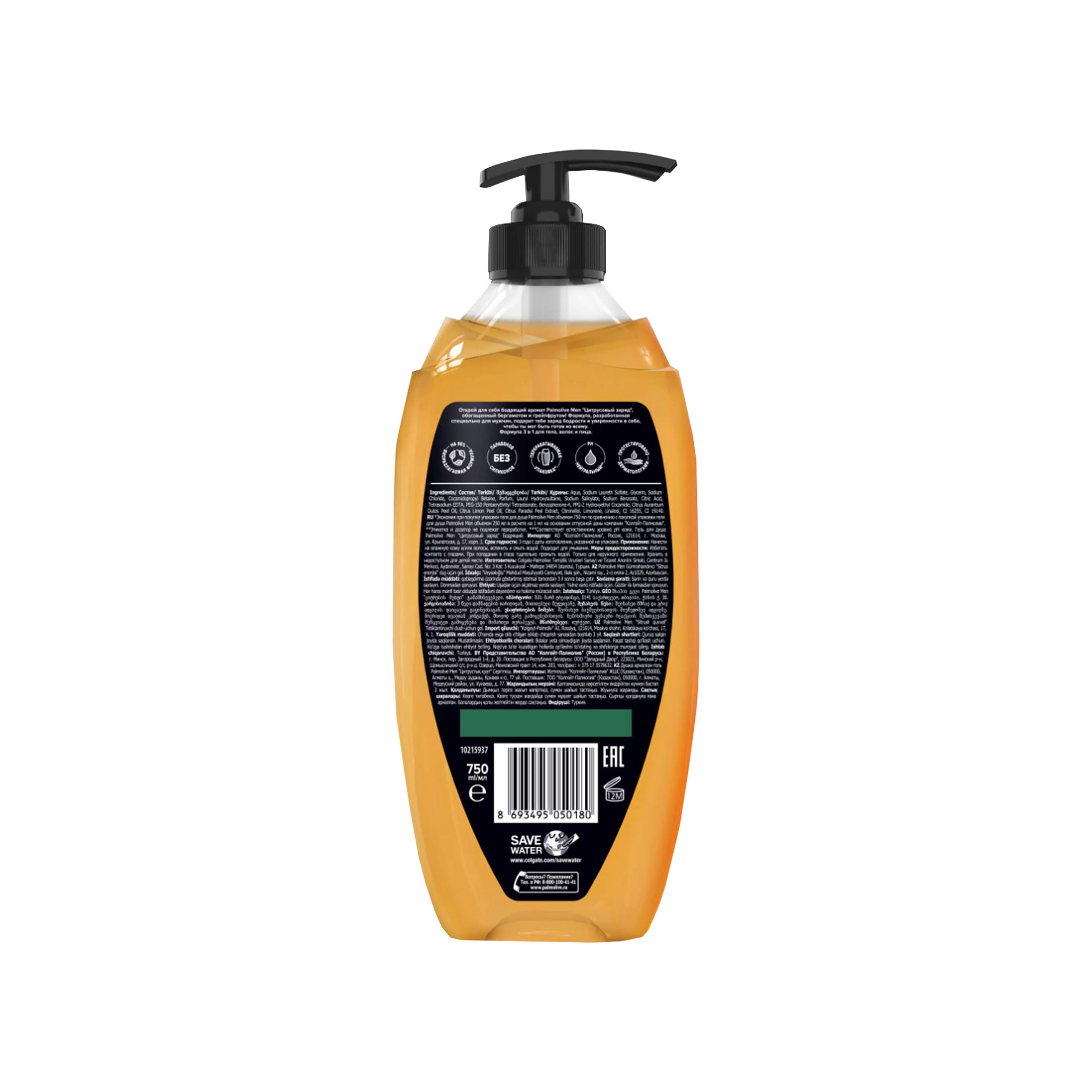 Мужской гель для душа Palmolive Men Бодрящий Цитрусовый Заряд 750 мл в Санвэй дарит энергию и ощущение свежести на целый день. Эффективная ph-нейтральная очищающая формула геля для душа 2 в 1 с натуральными экстрактами грейпфрута и бергамота бережно заботится о Вашей коже и волосах. Яркий цитрусовый аромат помогает восстановить жизненные силы и поднять настроение.
