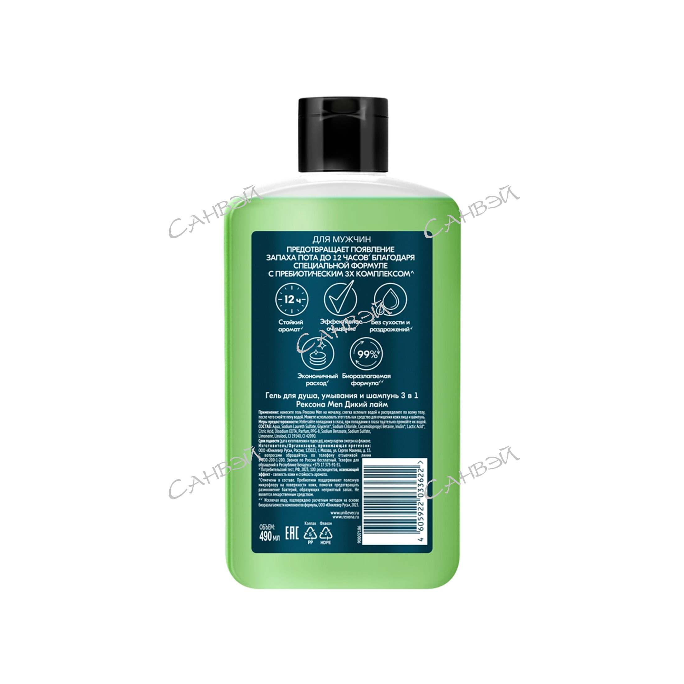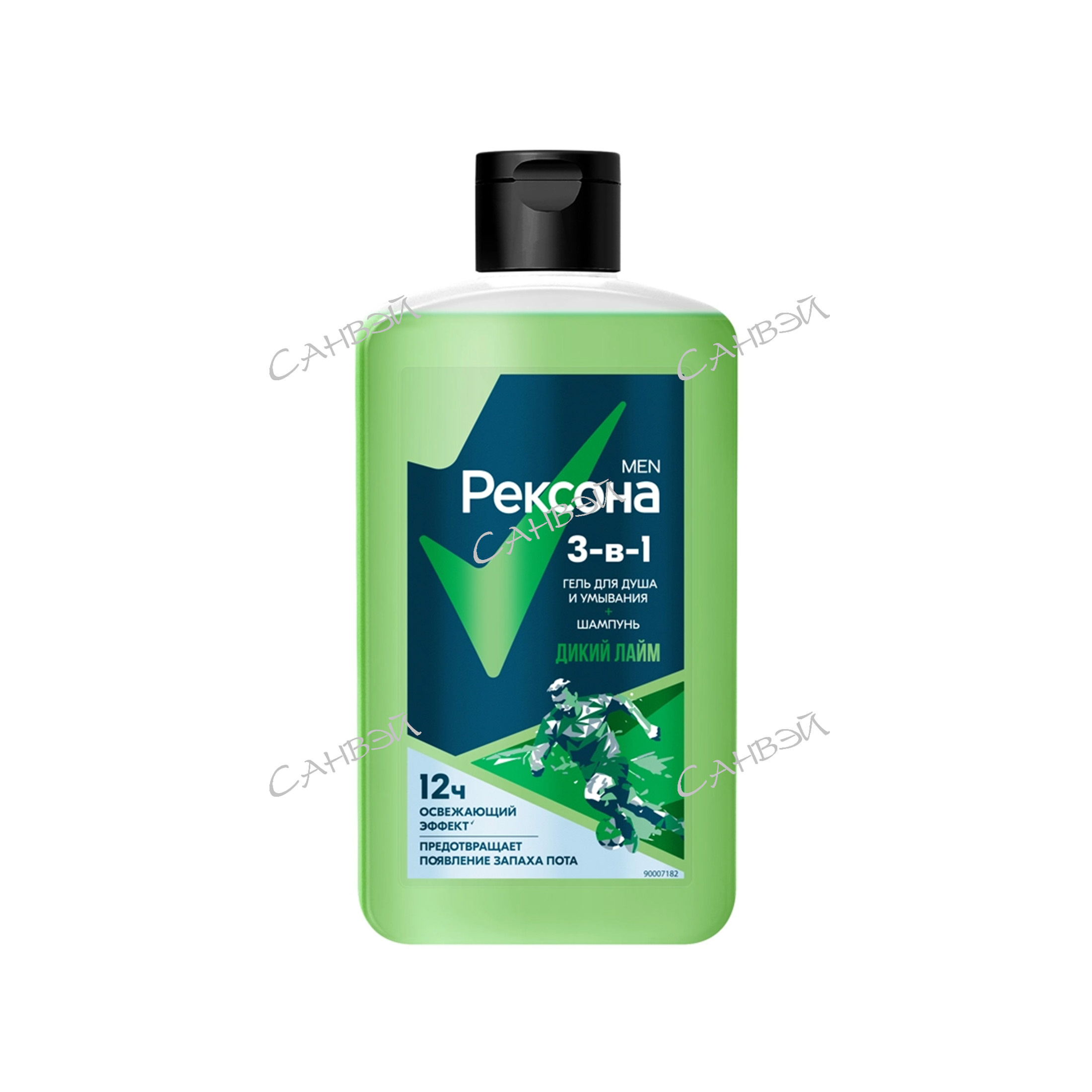 Рексона Men шампунь гель для душа для умывания лица и шампунь мужской 3в1 Дикий лайм 490 мл из интернет-магазина Санвэй - это уходовое средство, которое обеспечивает эффективное очищение кожи без сухости и раздражений. Продукт от Рексона MEN 3в1 работает как шампунь для волос, парфюмированный гель для душа мужской и средство для умывания лица.