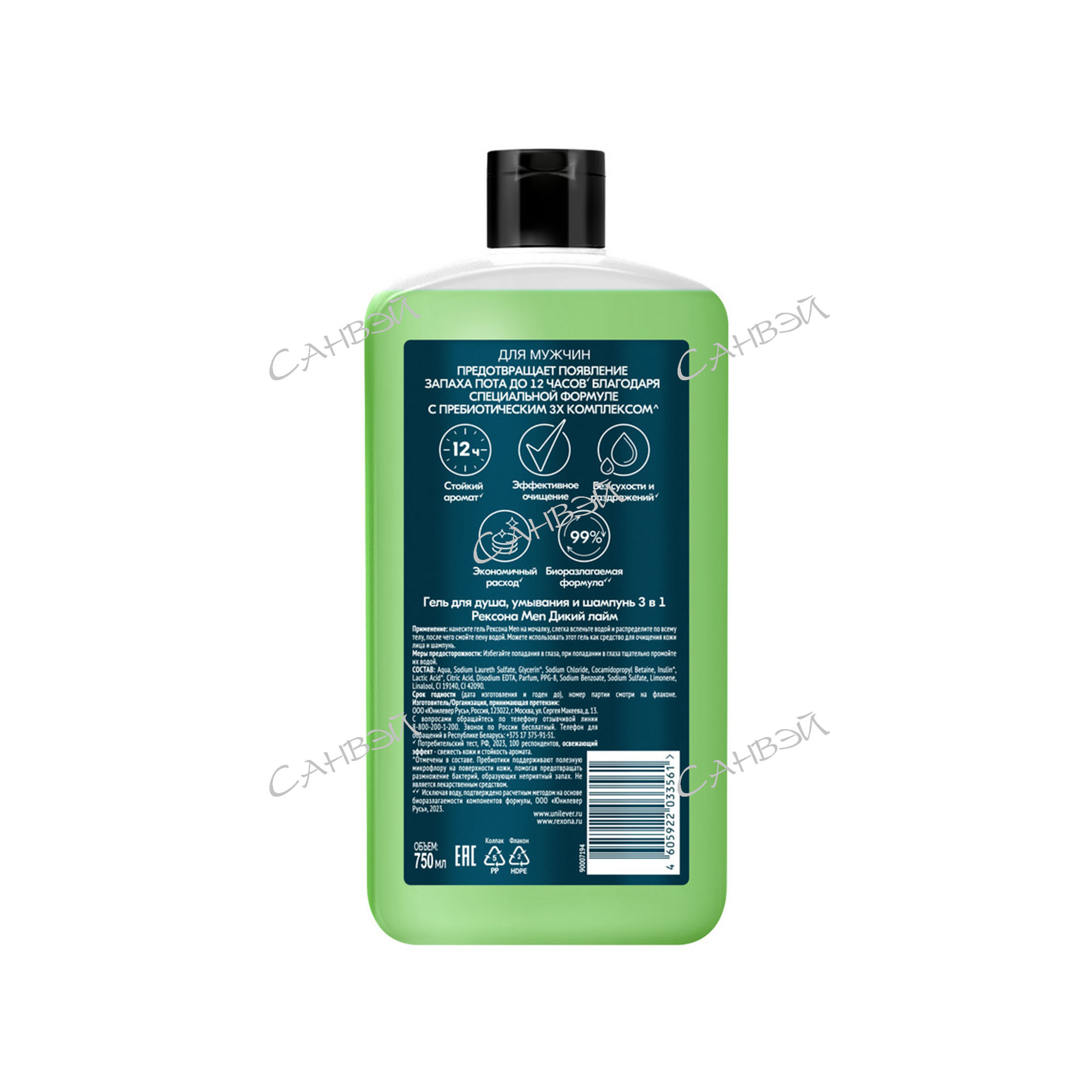 Rexona Men Дикий Лайм гель д/душа 2в1 750 мл муж освеж. д/в тип.кожи флакон 1шт / 6шт / 90002406 / 033561