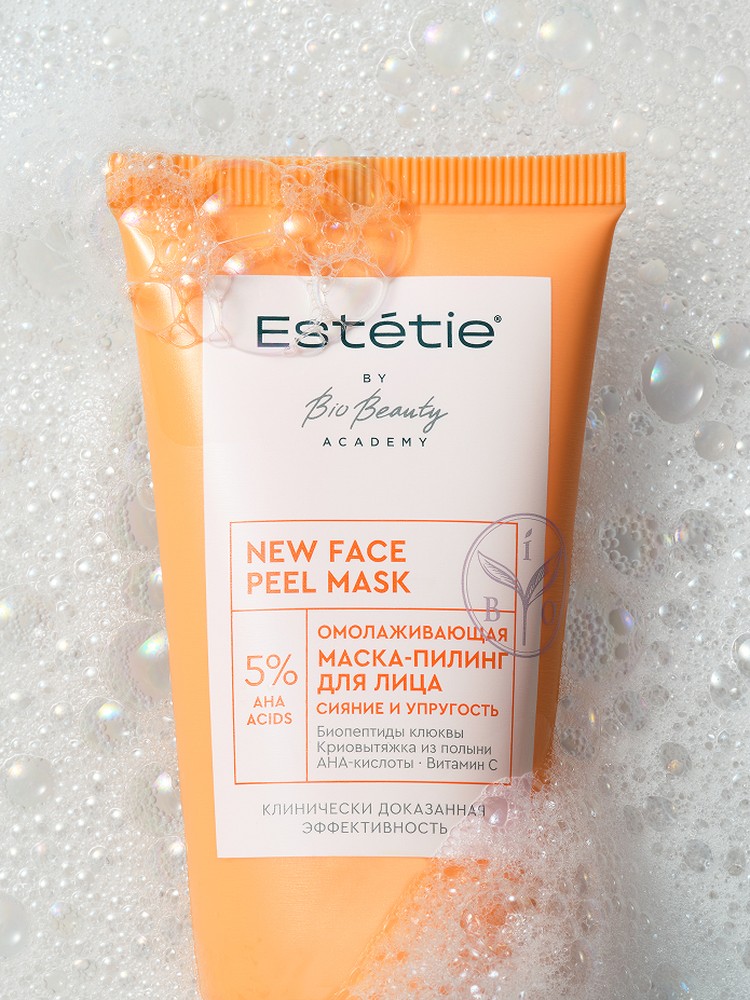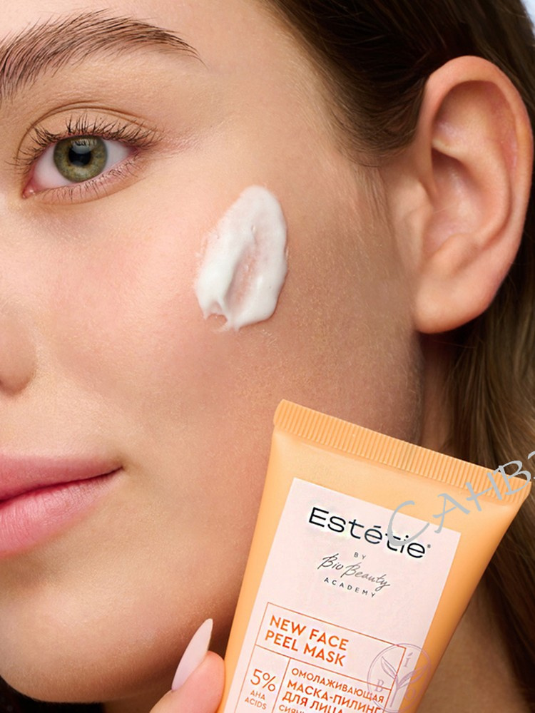Estetie Омолаживающая маска-пилинг для лица New Face Peel Mask 50 мл с 5% концентрацией AHA-кислот стимулирует регенерацию кожи, выравнивает микрорельеф и придает здоровое сияние.