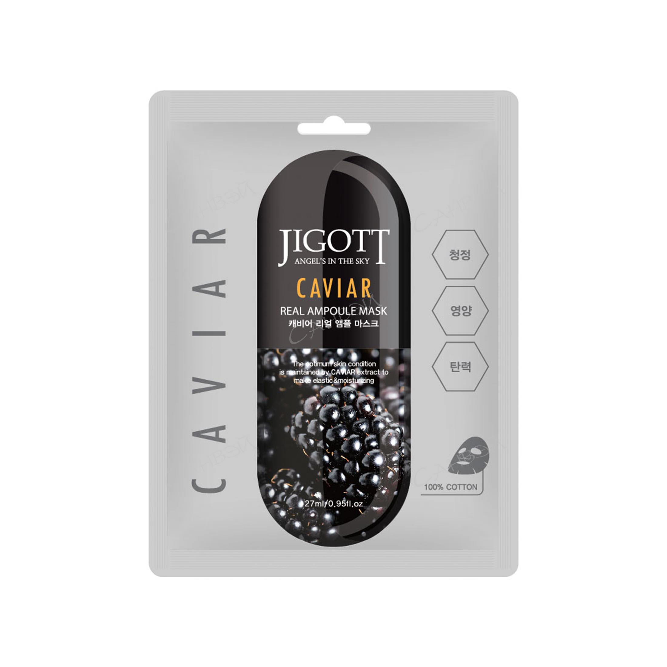 Ампульная маска с экстрактом чёрной икры Jigott Caviar Real Ampoule Mask восстанавливает защитные барьеры кожи, улучшает общее состояние, увлажняет и питает кожу. Входящие в состав компоненты наполняют кожу всеми необходимыми микроэлементами и минералами, значительно улучшается цвет лица, замедляются процессы старения и увядания. После регулярного применения кожа выглядит отдохнувшей и здоровой.