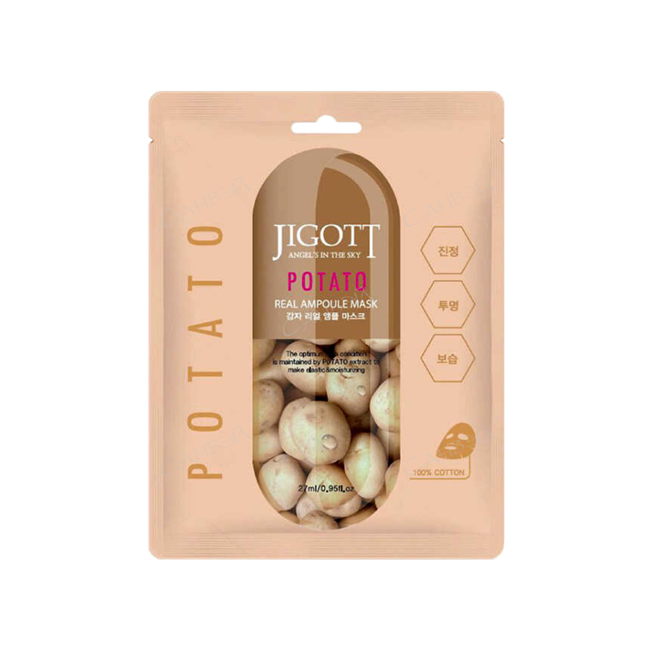 Ампульная маска с экстрактом картофеля Jigott Potato Real Ampoule Mask создана для мгновенного увлажнения и питания кожи. Она изготовлена из натурально хлопка и обильно пропитана эссенцией, содержащей максимальное количество витаминов и минералов, отлично покрывает кожу и передает ей питательные вещества. Тканевые маска помогает восстановить поврежденную, обезвоженную и раздраженную кожу лица. Маска пропитана ампулой с экстрактом картофеля, сок которого глубоко питает даже самую сухую кожу. Омолаживающее и отбеливающее действие оказывает крахмал, содержащийся в овоще. Он дарит коже гладкость, шелковистость, сияние, а также эффективно устраняет нежелательную пигментацию.