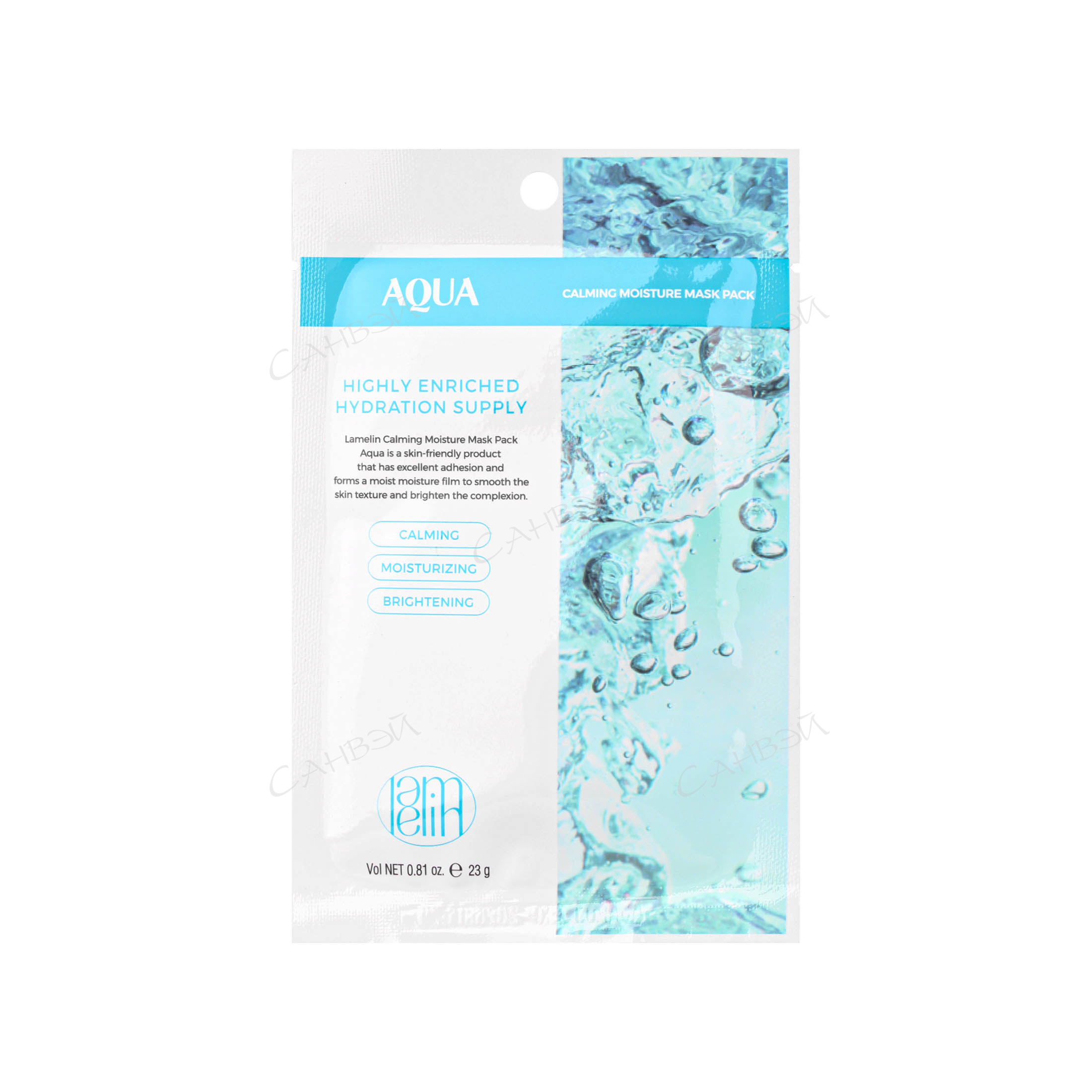 Lamelin AQUA маска д/лица тканев. 23 гр. увлажн. д/в тип.кожи саше 1шт / 500шт / LAMELIN-00031 / 214621