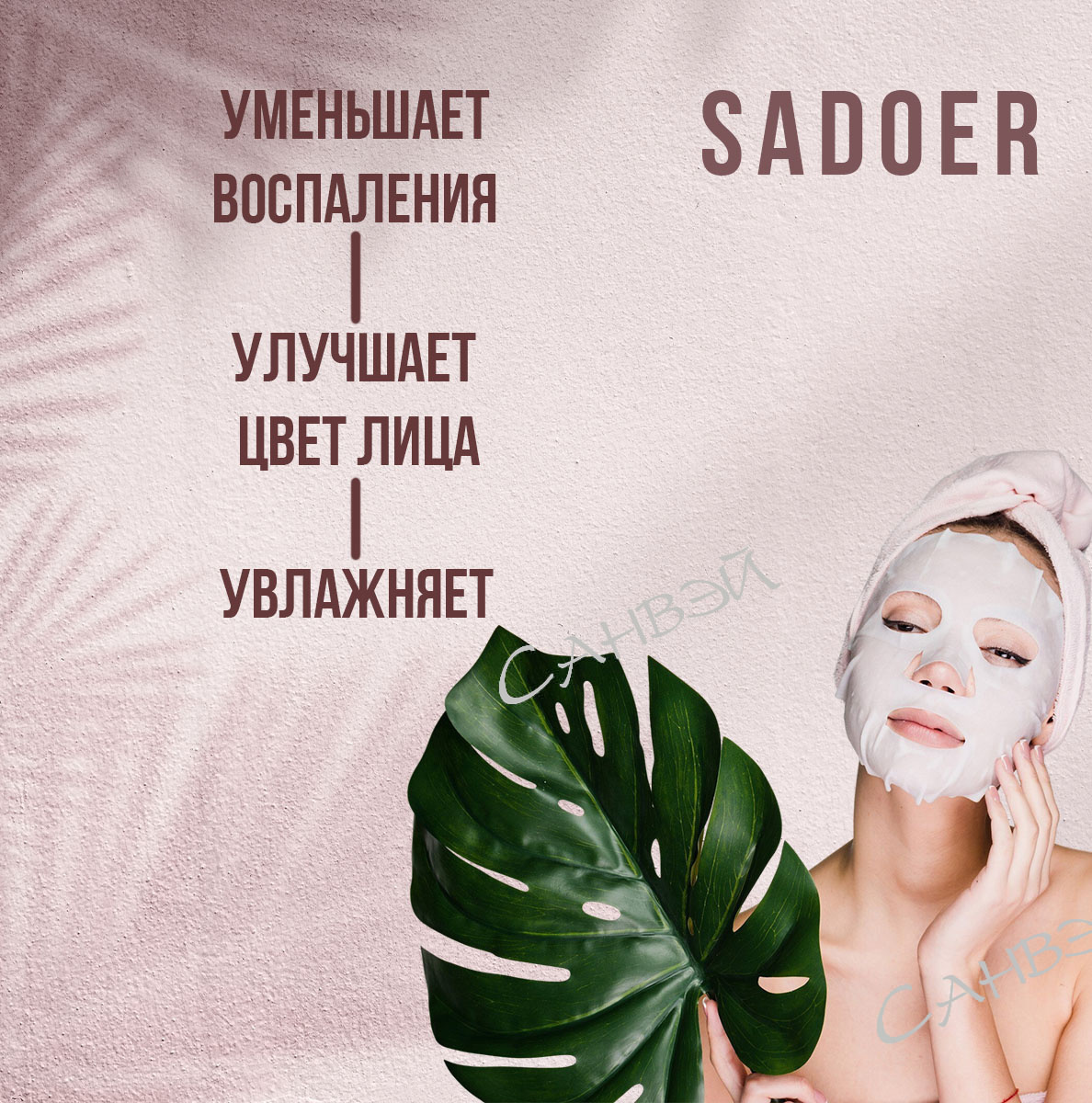 - В линейках Sadoer Plant mask и Sadoer Botany and fruits skin care вы найдете не только увлажняющие, но и огромное количество других масок разного действия с натуральными экстрактами для молодости вашей кожи.