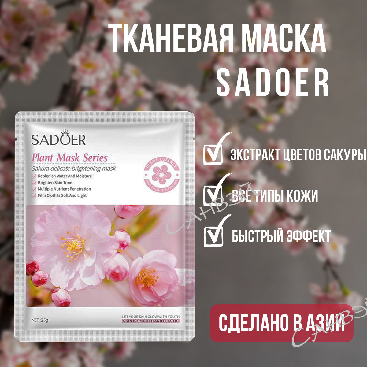 OBO Sadoer Plant mask series маска д/лица тканев. 25гр. питан. д/в т.кожи экст.цвет.сакуры саше 1шт / 720шт / SD90276 / 990276,715068