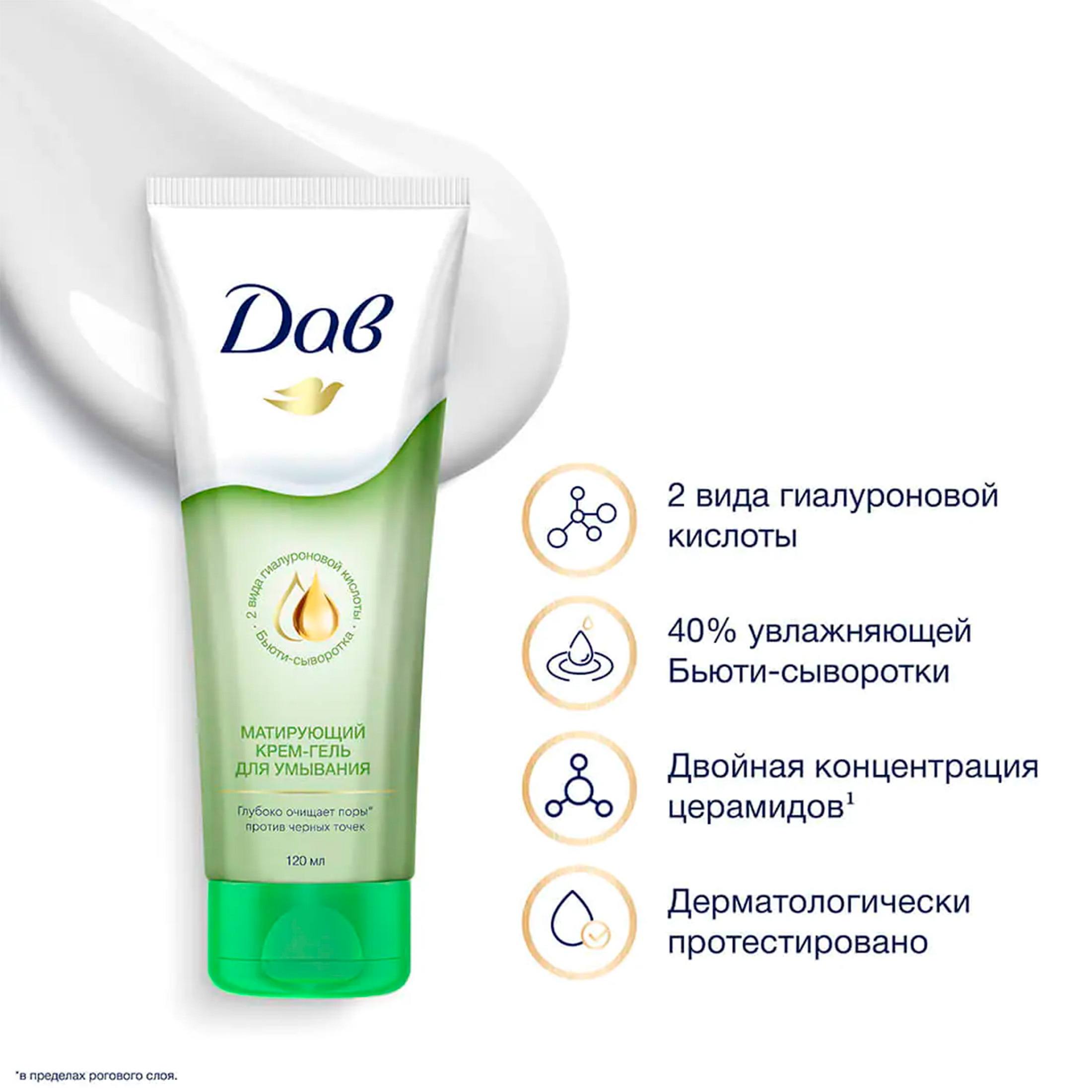 Матирующий крем-гель Дав предназначен для очищения кожи лица. Имеет кремовую нежную текстуру и освежающий цветочный аромат. Подходит для комбинированной и склонной к жирности кожи.