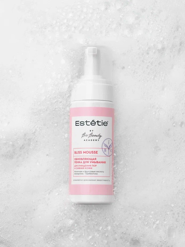 Estetie Обновляющая пенка для умывания Bliss Mousse 150 мл деликатно очищает кожу, устраняет повседневные загрязнения и излишки себума, не нарушая целостность гидролипидного барьера.