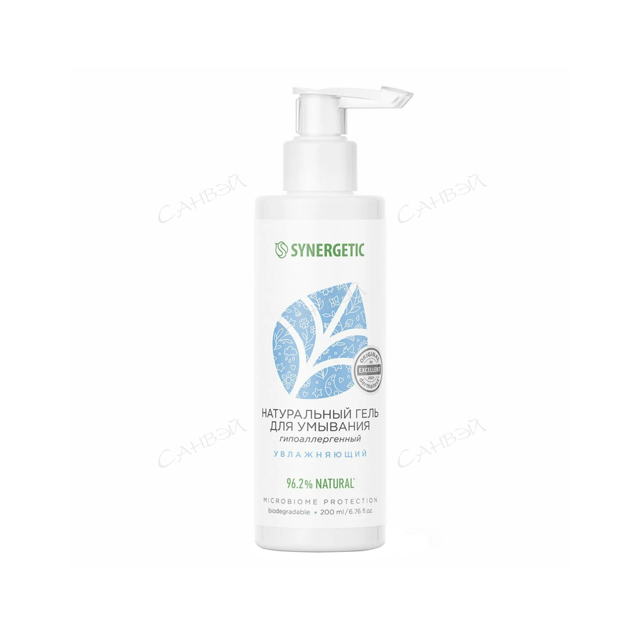 Гипоаллергенный Synergetic Гель для умывания Увлажняющий 200 мл деликатно очищает кожу, легко смывается водой, обеспечивая бережный ежедневный уход и чувство свежести.