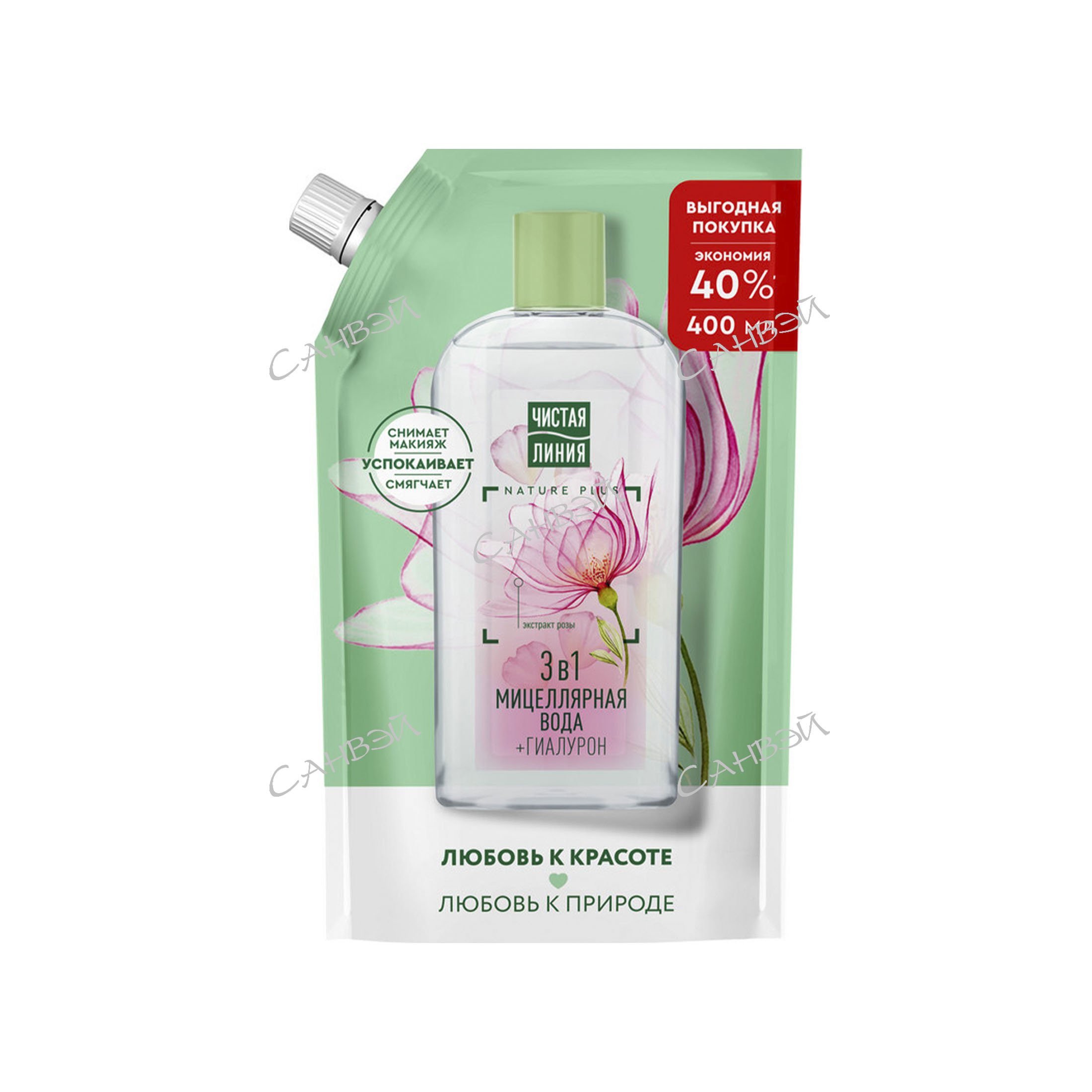 Чистая Линия мицеллярная вода 3в1 очищ. д/всех тип.кожи дой-пак 1шт 400мл / 6шт / 69613386 / 006829