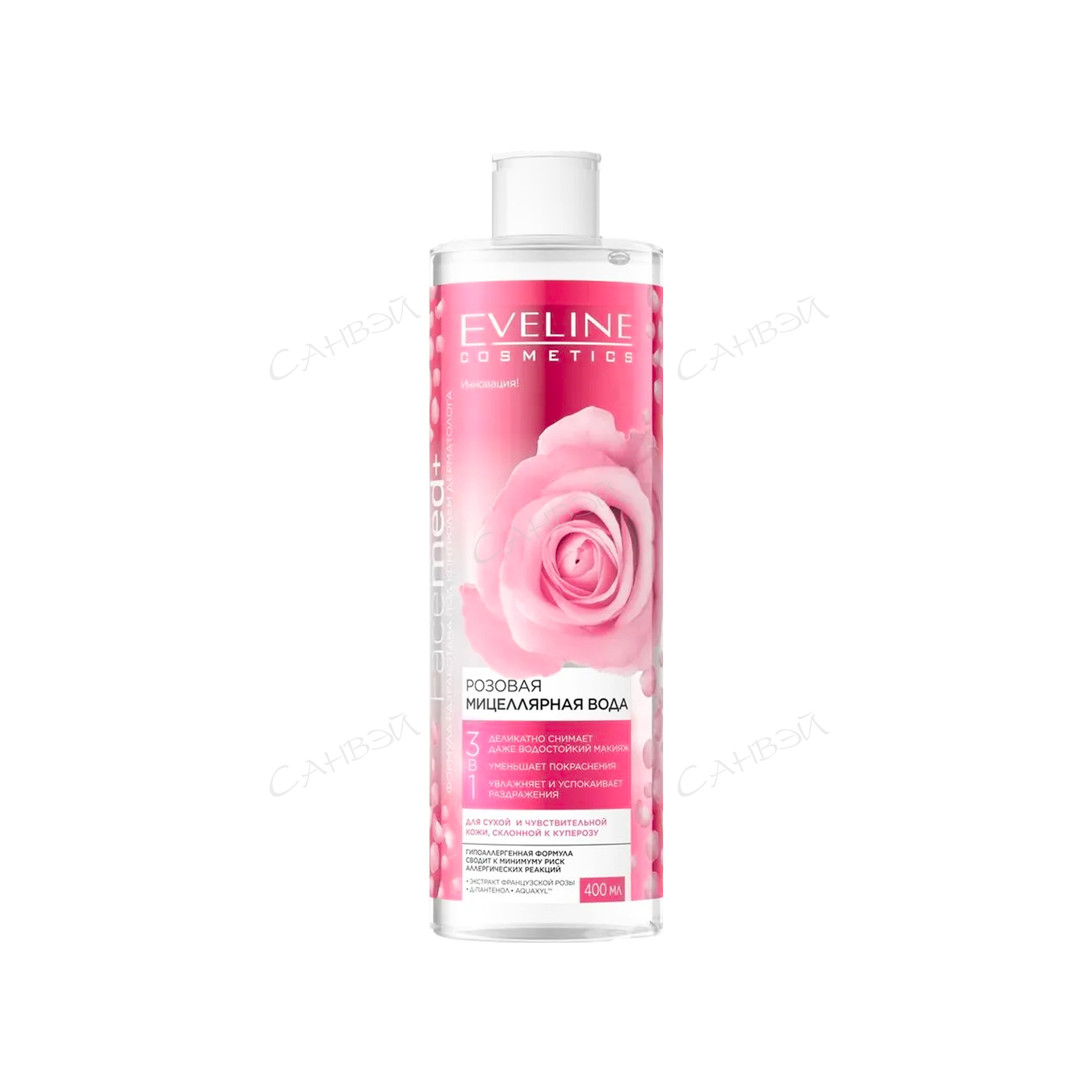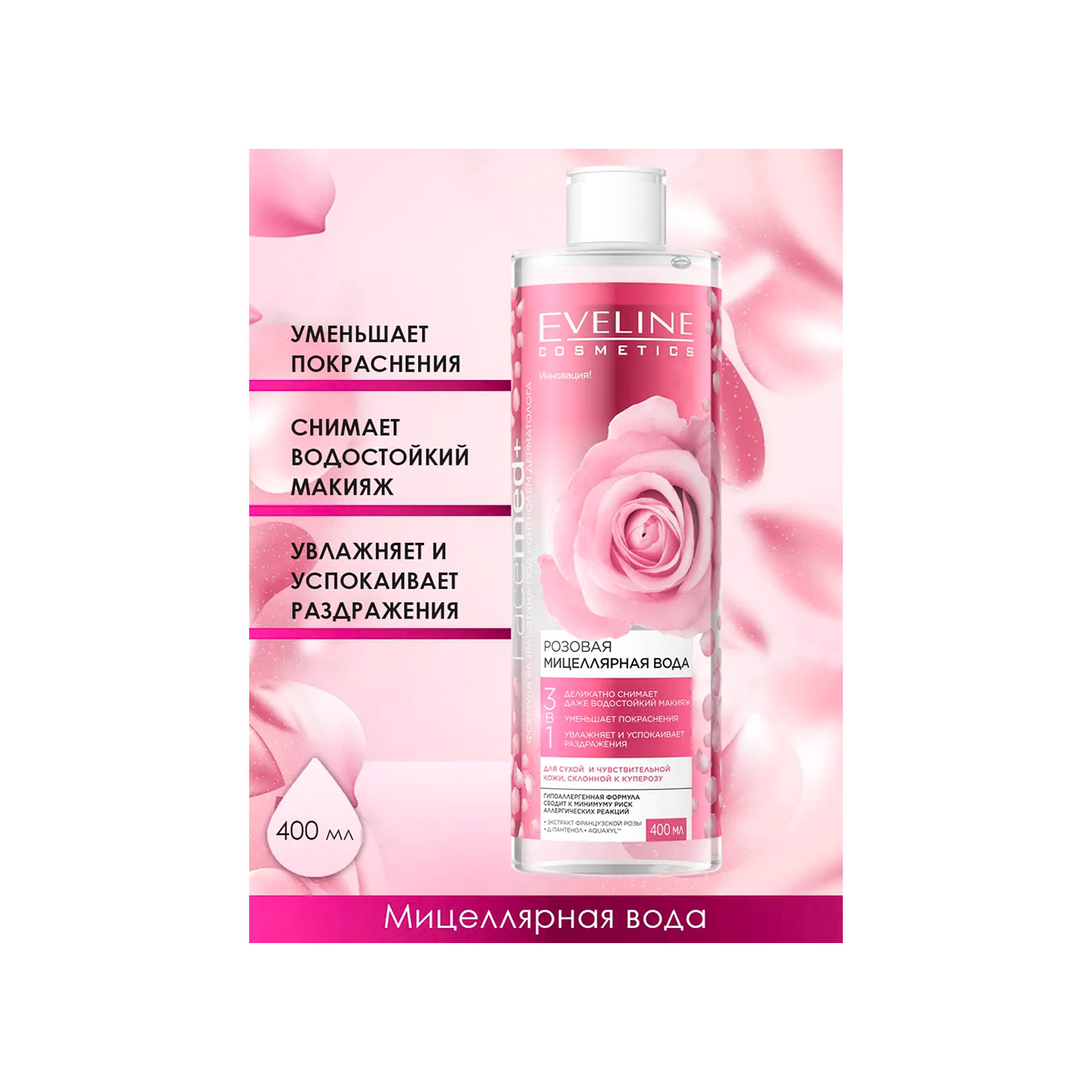 Eveline мицеллярная вода 3в1 400 мл очищ. коллаген д/сух.,чувст.кожи с экстр.розы флакон 1шт / 9шт / B400PMFMR / 955262