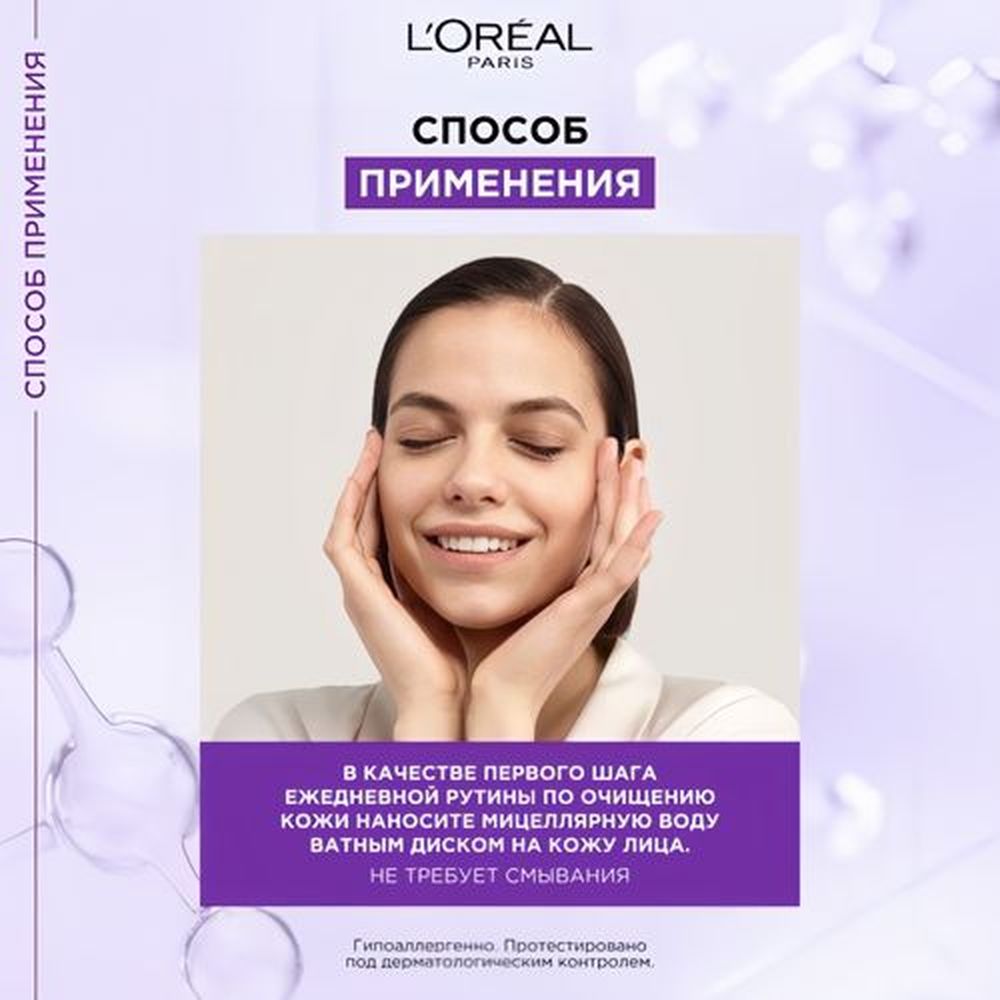 Утром и вечером, используя ватный диск, нанесите мицеллярную воду.