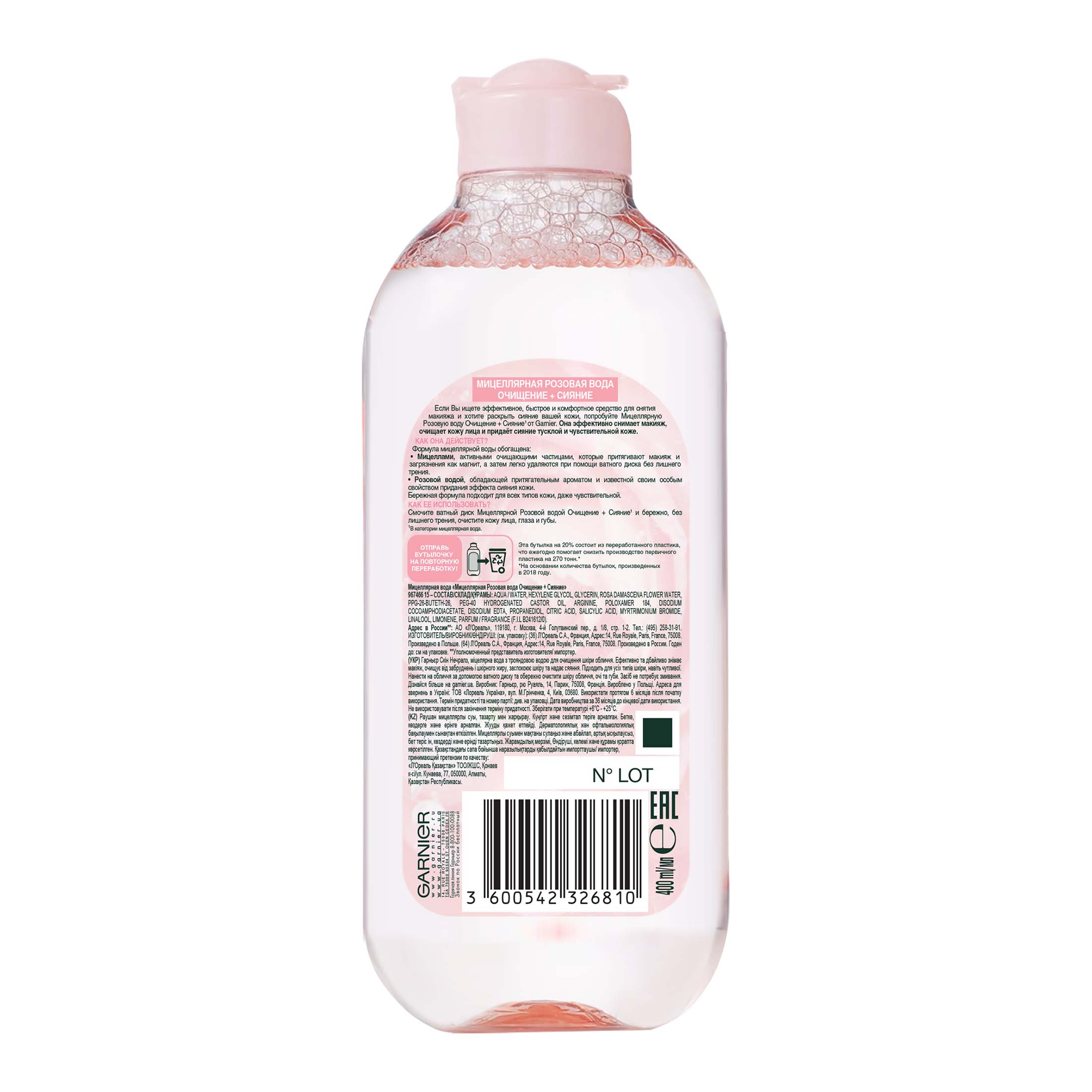 Гарньер мицеллярная вода 400 мл очищ.,сияние д/в тип.кожи розов. флакон 1шт / 6шт / C6390801 / 326810
