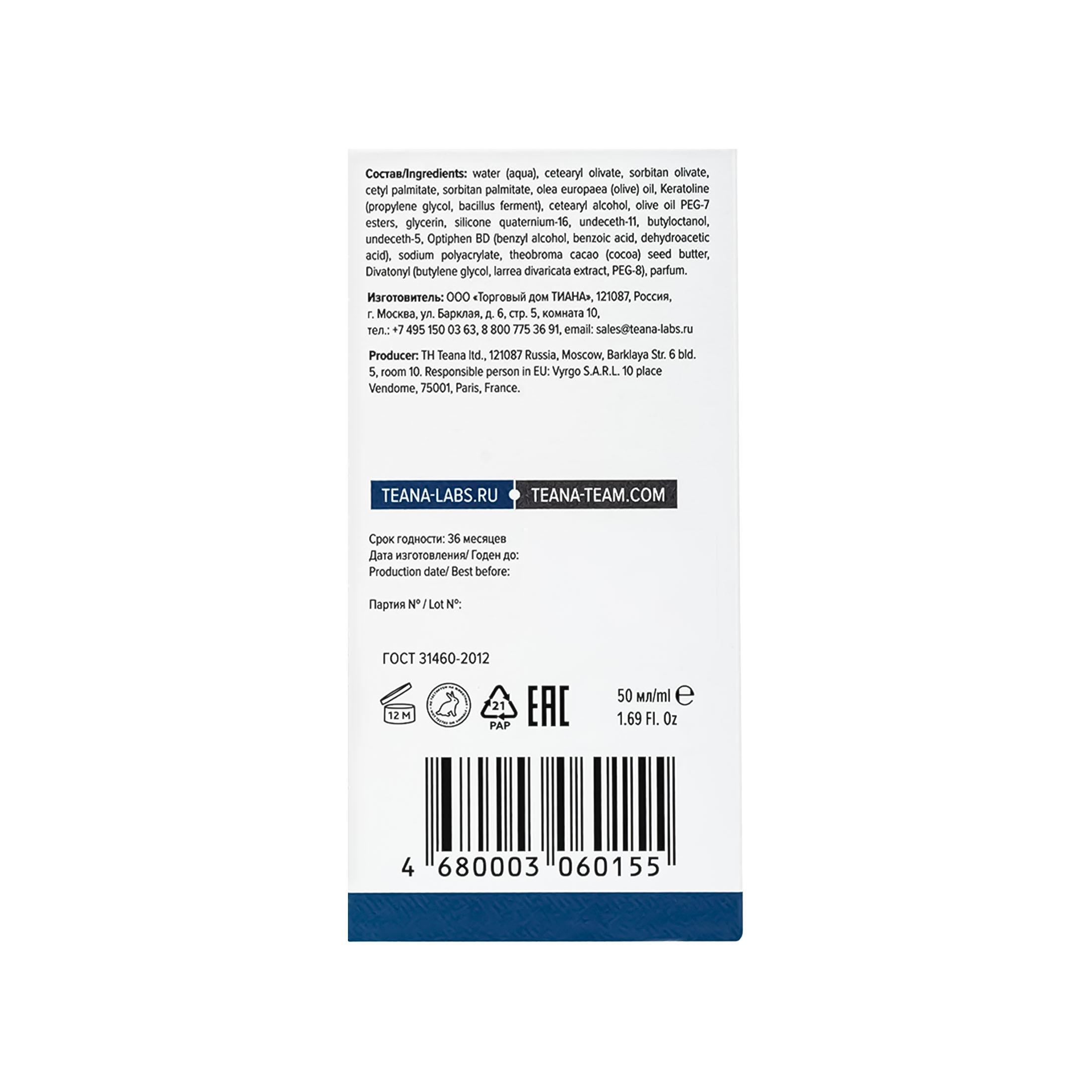 water (aqua), cetearyl olivate (and) sorbitan olivate, cetyl palmitate (and) sorbitan palmitate, olea europaea (olive) oil, keratoline (propylene glycol,bacillus ferment), cetearyl alcohol, olive oil peg-7 esters, glycerin, silicone qaternium-16 (and) undeseth-11 (and) butyloctanol (and) undeseth-5, optiphen BD (benzyl alcohol,benzoic acid, dehydroacetic acid),sodium polyacrylate,theobroma cacao (cocoa) seed butter, divatonyl (butylene glycol,larrea divaricata extract,PEG-8),parfum.