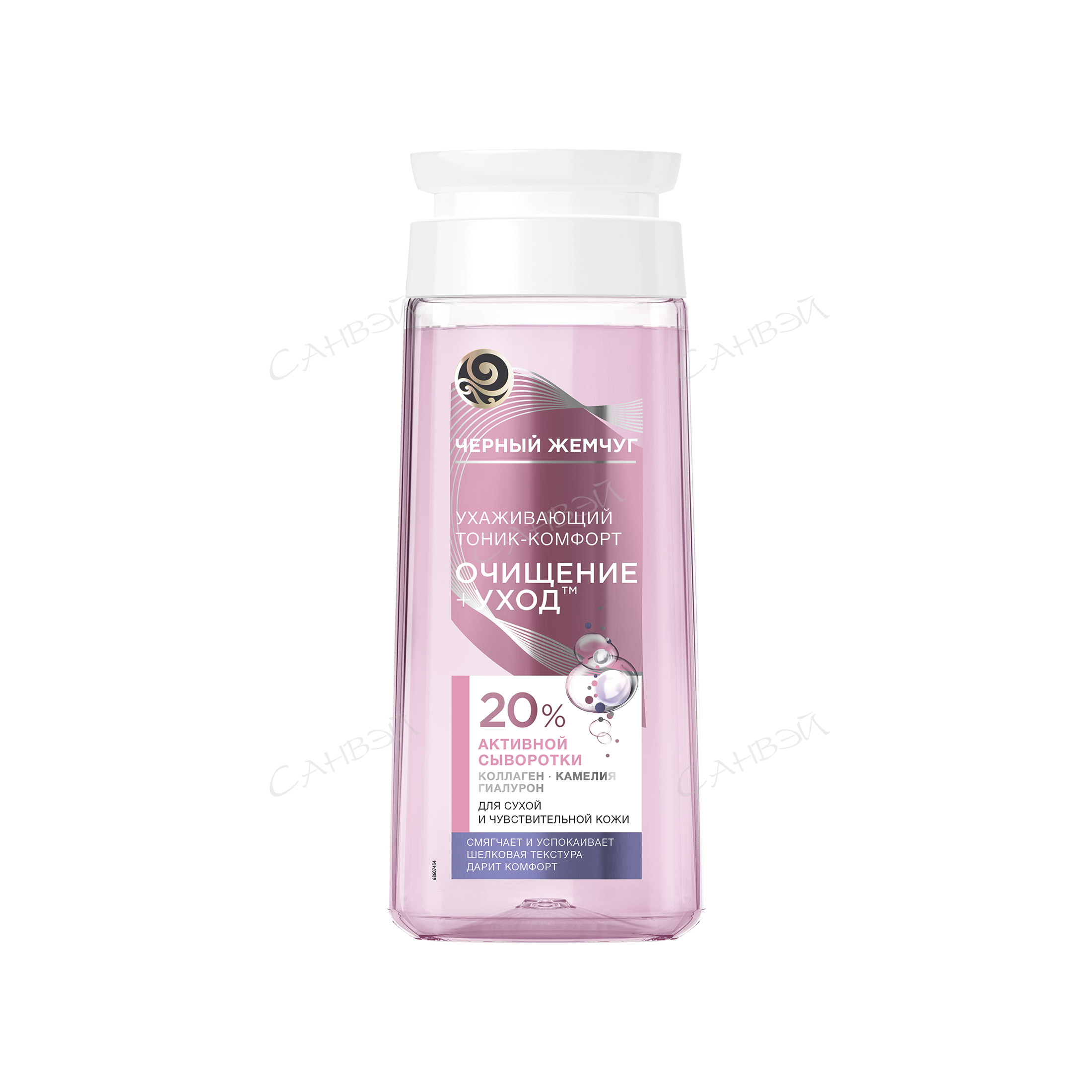 Попробуйте тоник-комфорт, соответствующий новому стандарту очищения: очищение + уход, разработанный экспертами бренда Черный Жемчуг для сухой и чувствительной кожи.