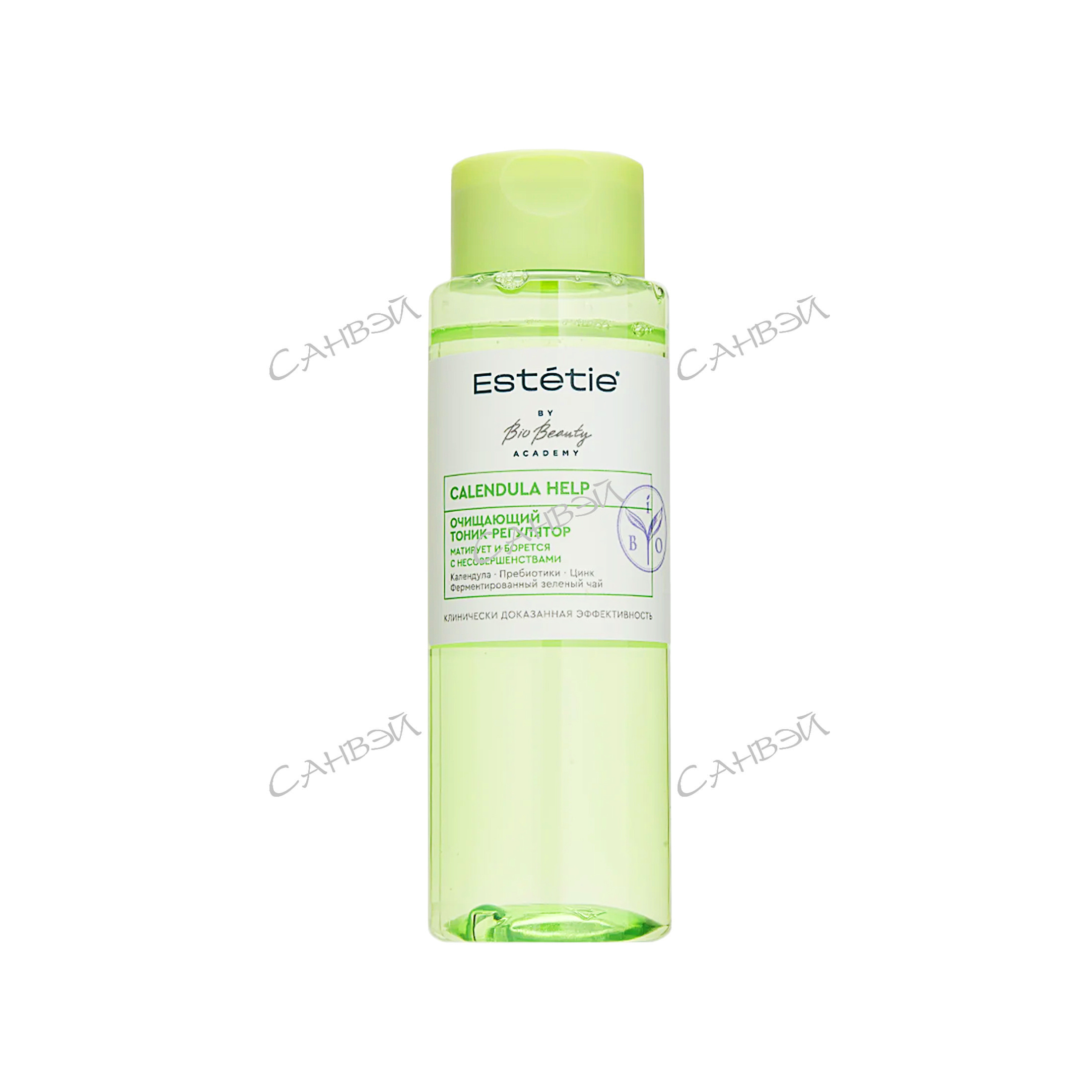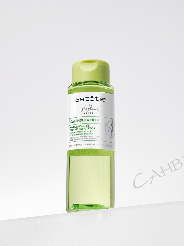 Estetie Очищающий тоник-регулятор Calendula Help 180 на основе календулы и пребиотиков очищает кожу и снижает активность сальных желез, устраняя нежелательный блеск, делая поры менее заметными, а кожу - идеально матовой. Усиливает эффективность последующего ухода и оказывает противовоспалительное действие.