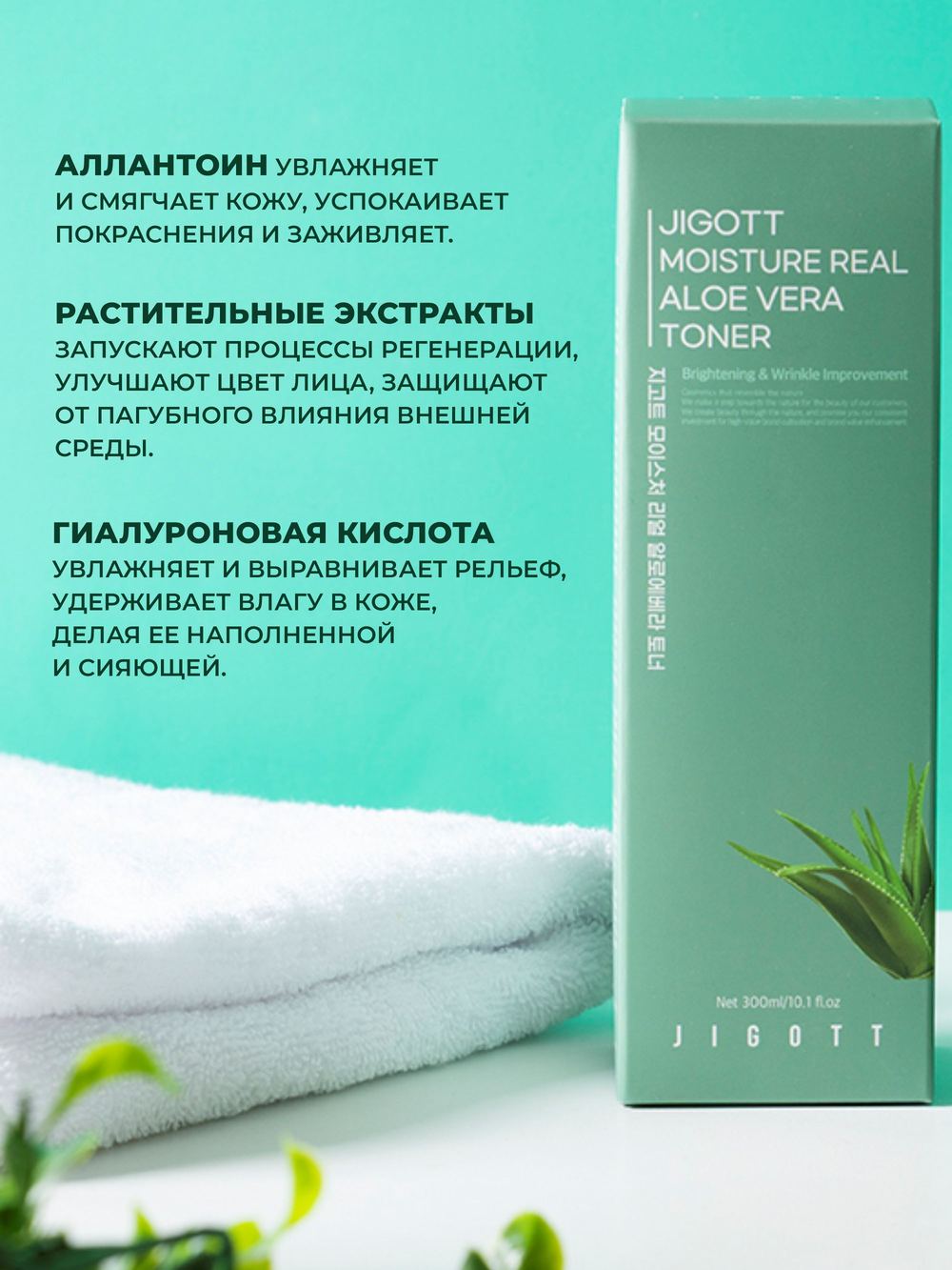 Содержит экстракт листьев алоэ вера и другие растительные экстракты, которые быстро увлажняют сухую кожу, придавая ей свежий вид. Содержит аденозин и ниацинамид, которые способствуют выравниванию тона кожи и разглаживанию мелких морщин. Страна происхождения: Республика Корея.