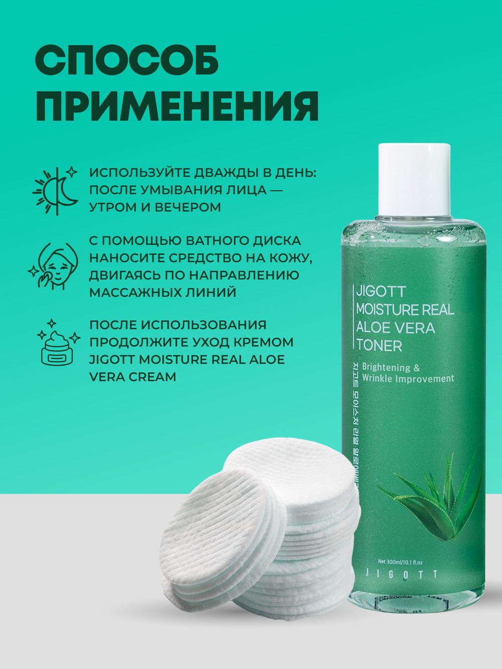 Нанесите средство на ватный диск, протрите кожу лица и шеи. Для усиления эффекта, повторите процедуру