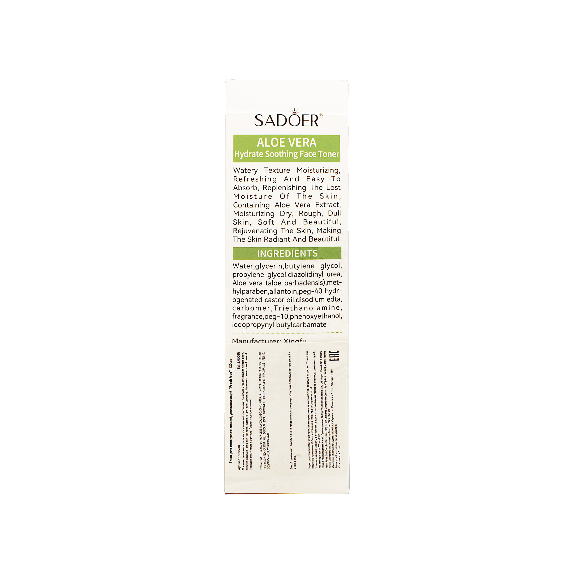 OBO Sadoer Fresh Aloe тоник д/лица 120мл увлажн.,успок. д/в т.кожи флакон 1шт / 96шт / SD96420 / 396420,712234