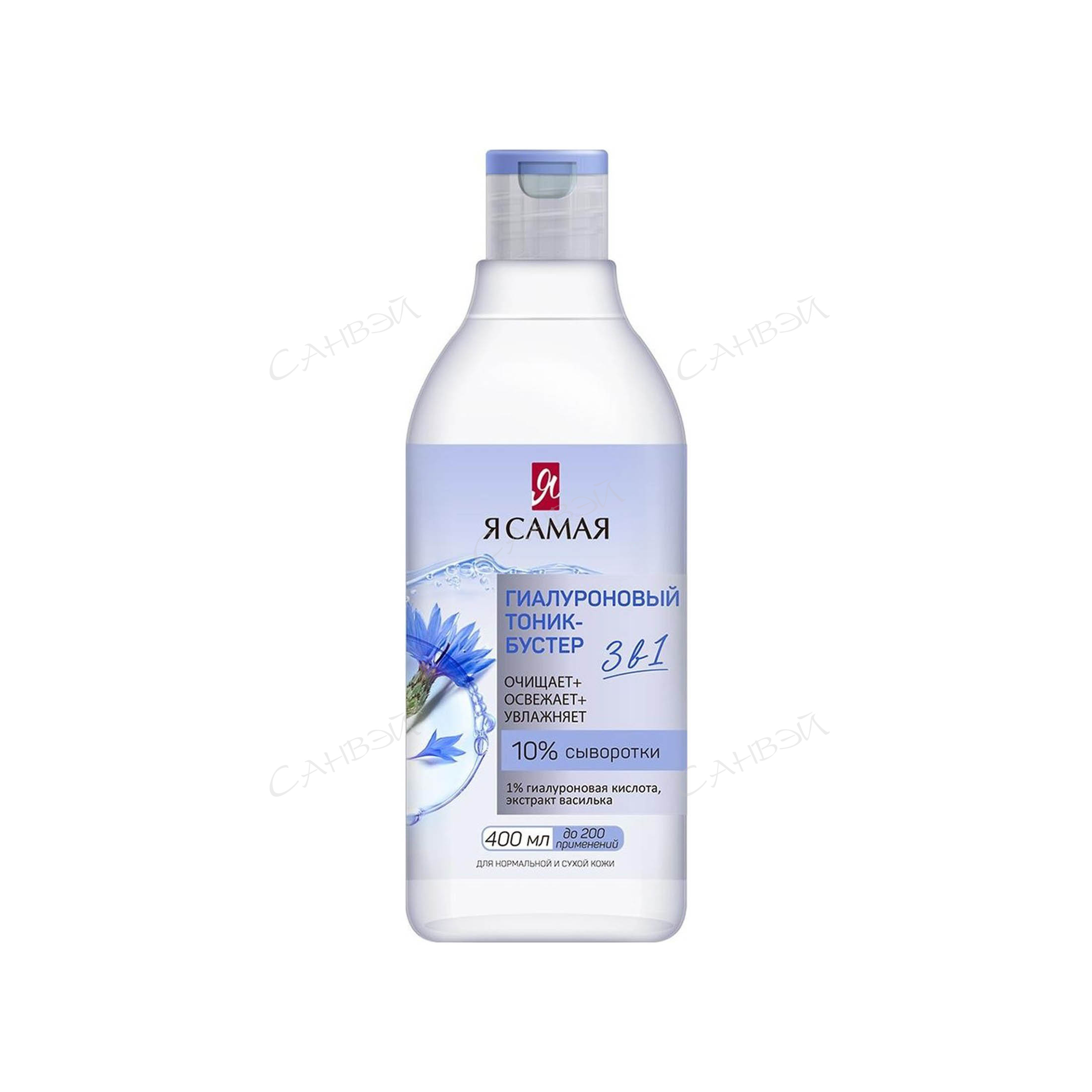 Гиалуроновый тоник-бустер для нормальной и сухой кожи. Эксперты бренда Я САМАЯ создали ухаживающую формулу тоника, содержащую 10% сыворотки для бережного ухода за кожей лица, а также для дополнительного увлажнения в течение всего дня. Гиалуроновая кислота обеспечивает интенсивное и длительное увлажнение, повышает упругость и эластичность кожи. Экстракт василька увлажняет, выравнивает цвет лица, тонизирует и успокаивает кожу.