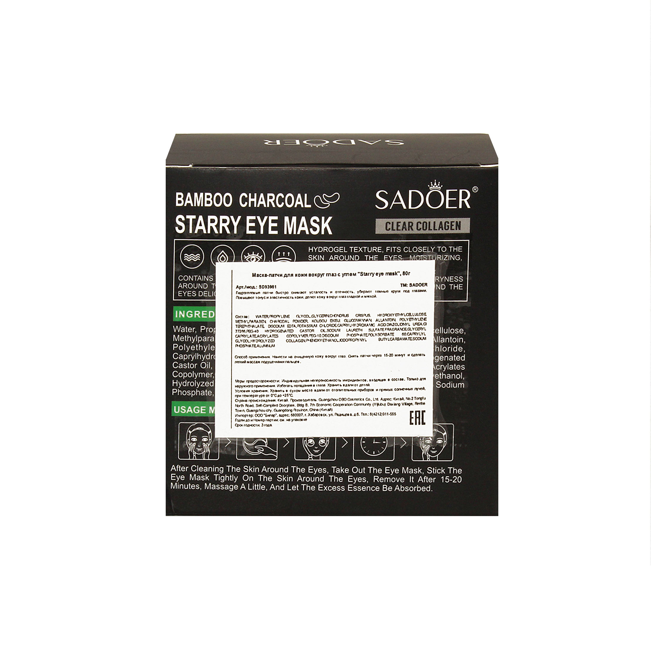 Нанести на очищенную кожу вокруг глаз. Снять патчи через 15-20 минут и сделать легкий массаж подушечками пальцев.