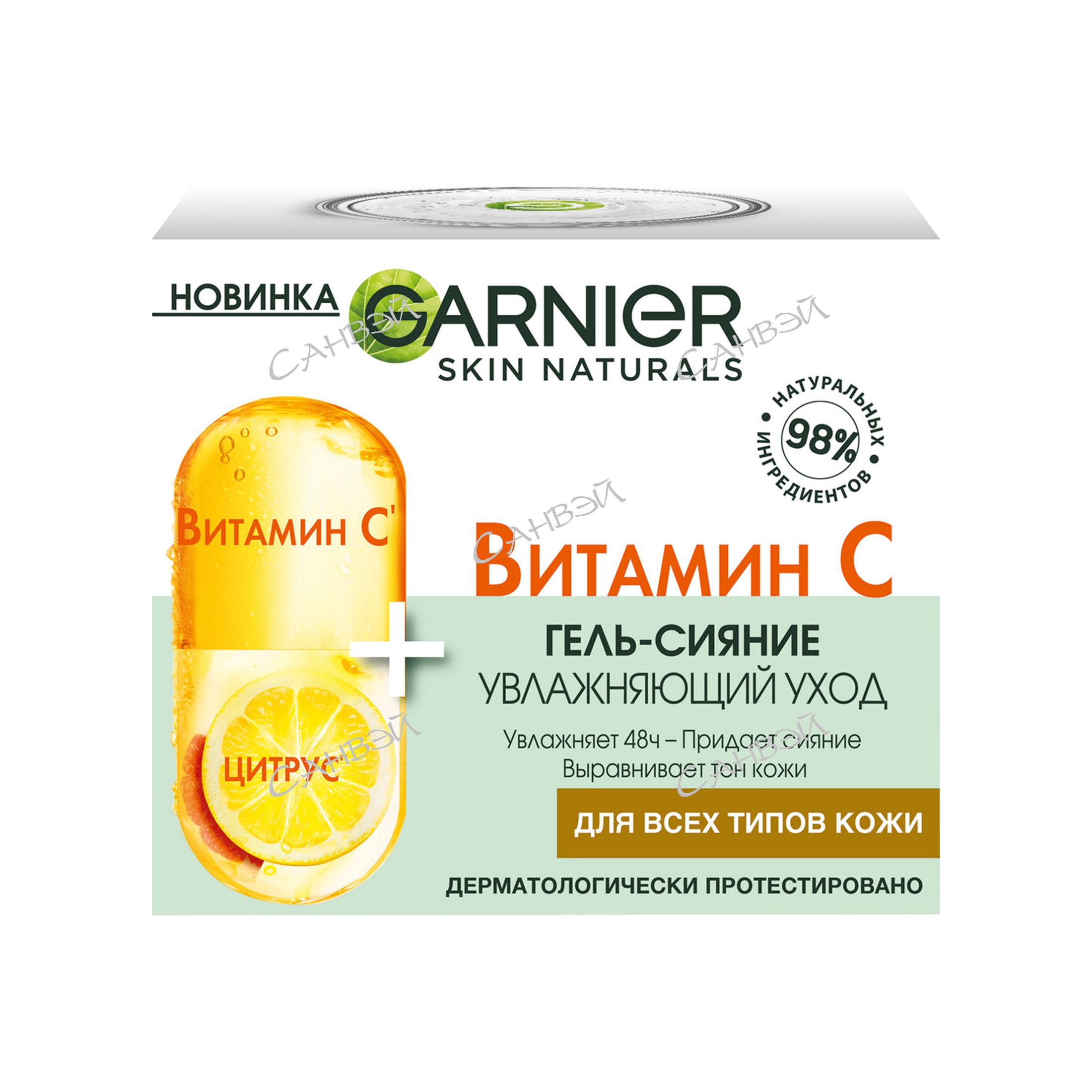 Garnier Дневной гель-сияние для лица с Витамином С, 50 мл содержит 98% ингредиентов натурального происхождения с обогащен ВИТАМИНОМ С + ЦИТРУСОМ, придает здоровое сияние, выравнивает тон кожи и дает ее более свежей.