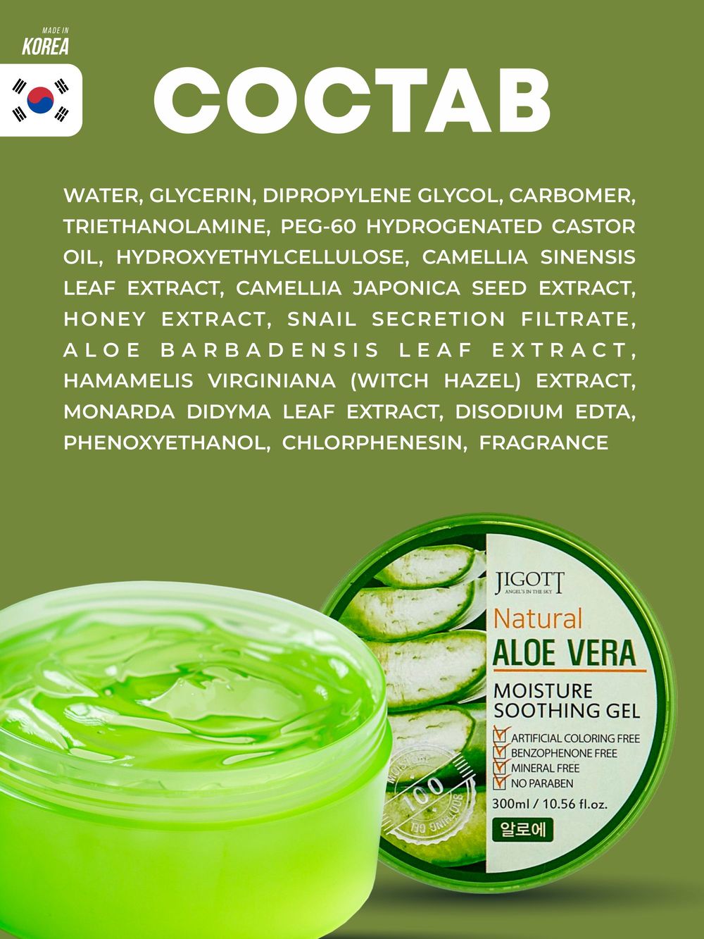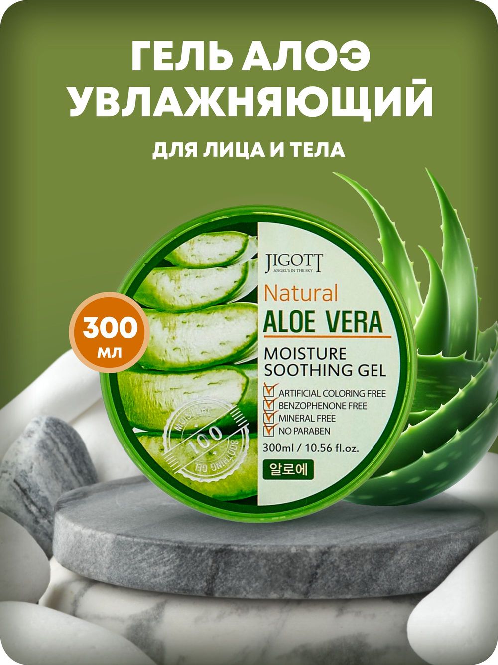 Jigott гель д/тела и лица 300 мл увлажн. д/в тип.кожи алоэ вера банка / 50шт / 21F301 / 280726