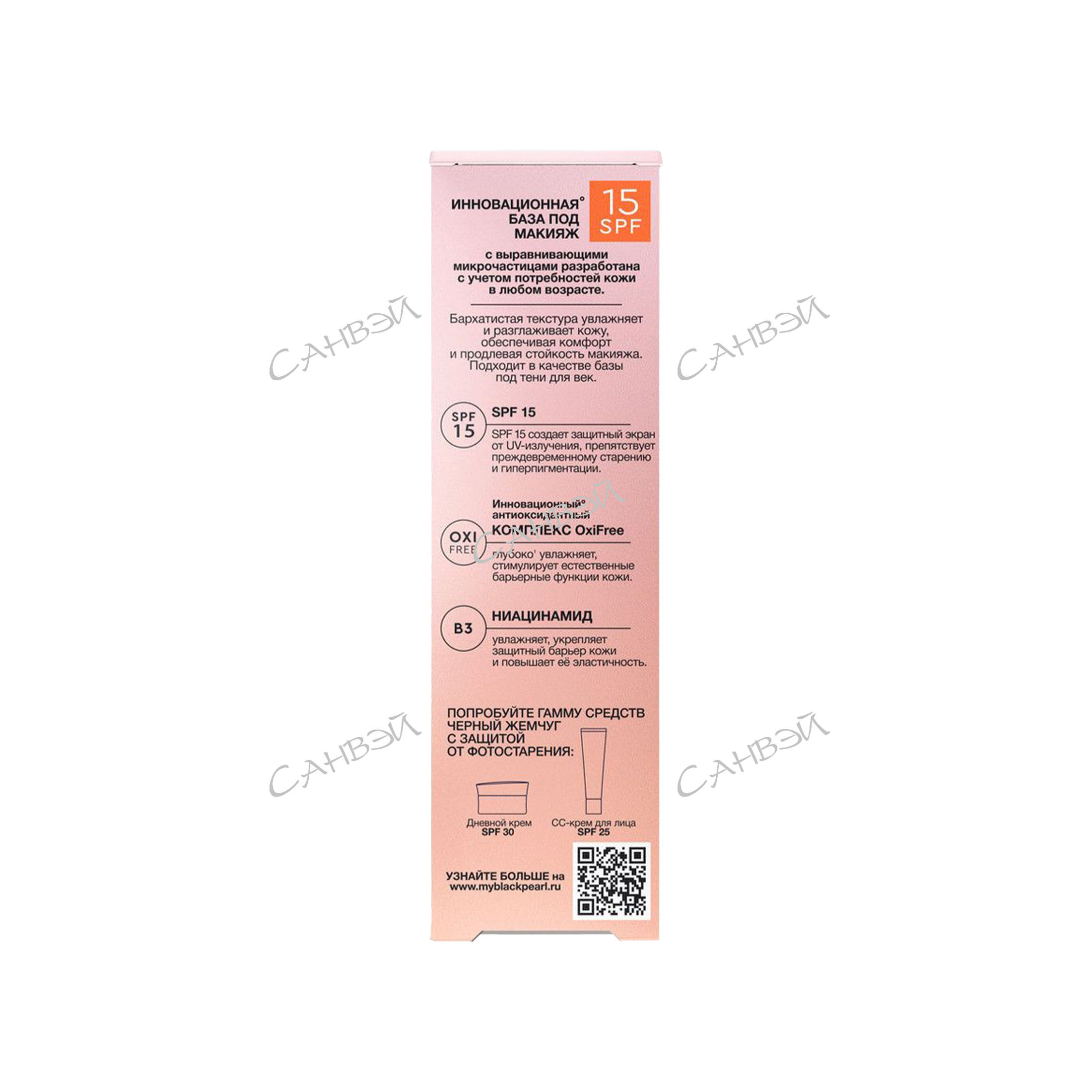 Попробуйте новинку от бренда Черный Жемчуг – мультифункциональную базу под макияж. Инновационная база под макияж с SPF 15 и выравнивающими микрочастицами разработана с учетом потребностей кожи в любом возрасте. Результат: кожа увлажнена, ухожена и подготовлена к нанесению макияжа. Для наилучшего эффекта сочетайте базу с очищающим средством и тоником по типу кожи.