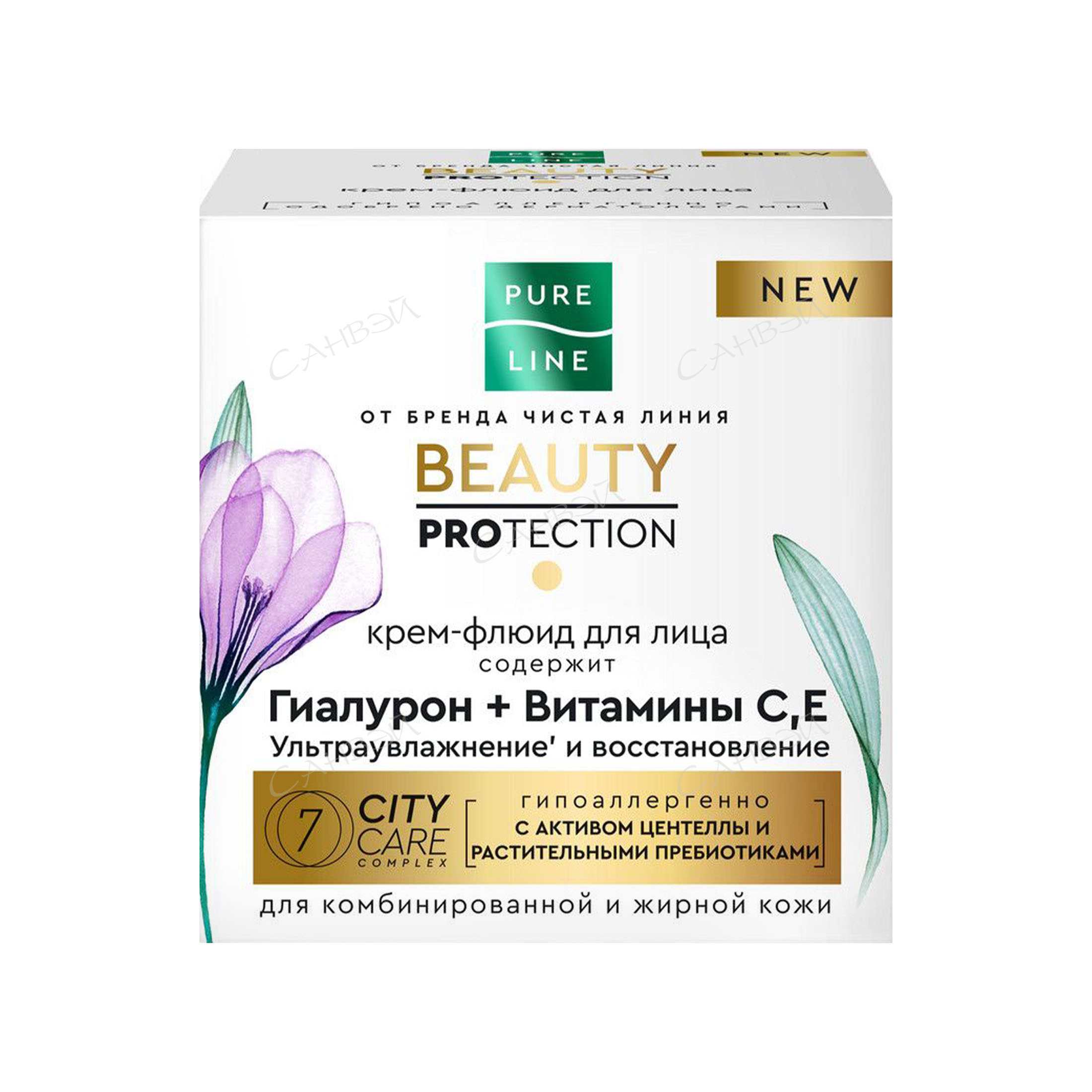 Активируйте естественные механизмы защиты кожи на новом уровне ее комфорта с Pure Line от бренда Чистая Линия! Гипоаллергенный крем-флюид для лица с гиалуроновой кислотой и витаминами С и Е от бренда 45 мл из магазина Санвэй разработан с учетом всех потребностей жирной и комбинированной кожи. Невесомая тающая текстура легко впитывается и не оставляет жирной пленки.