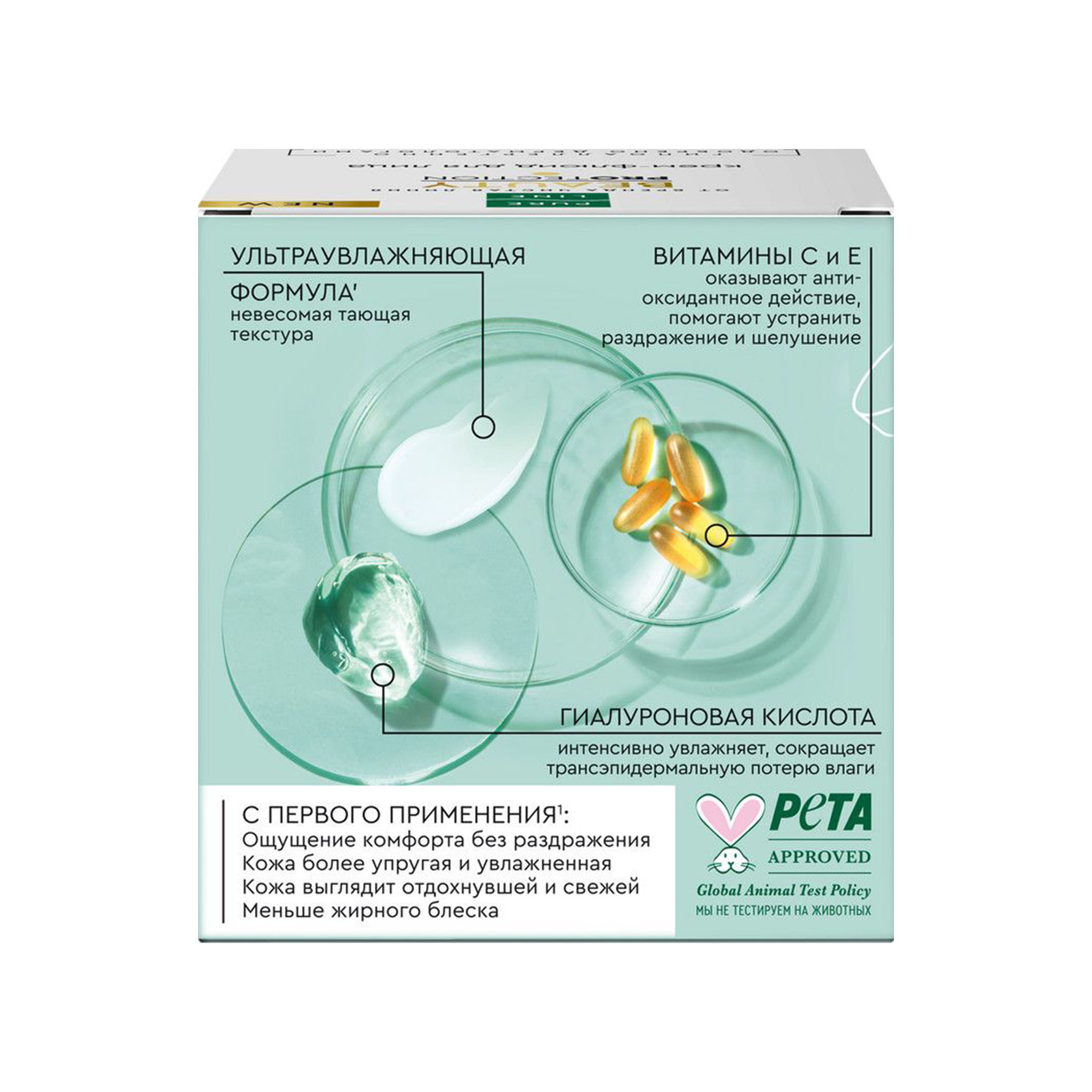- Гиалуроновая кислота интенсивно увлажняет, сокращает трансэпидермальную потерю влаги.