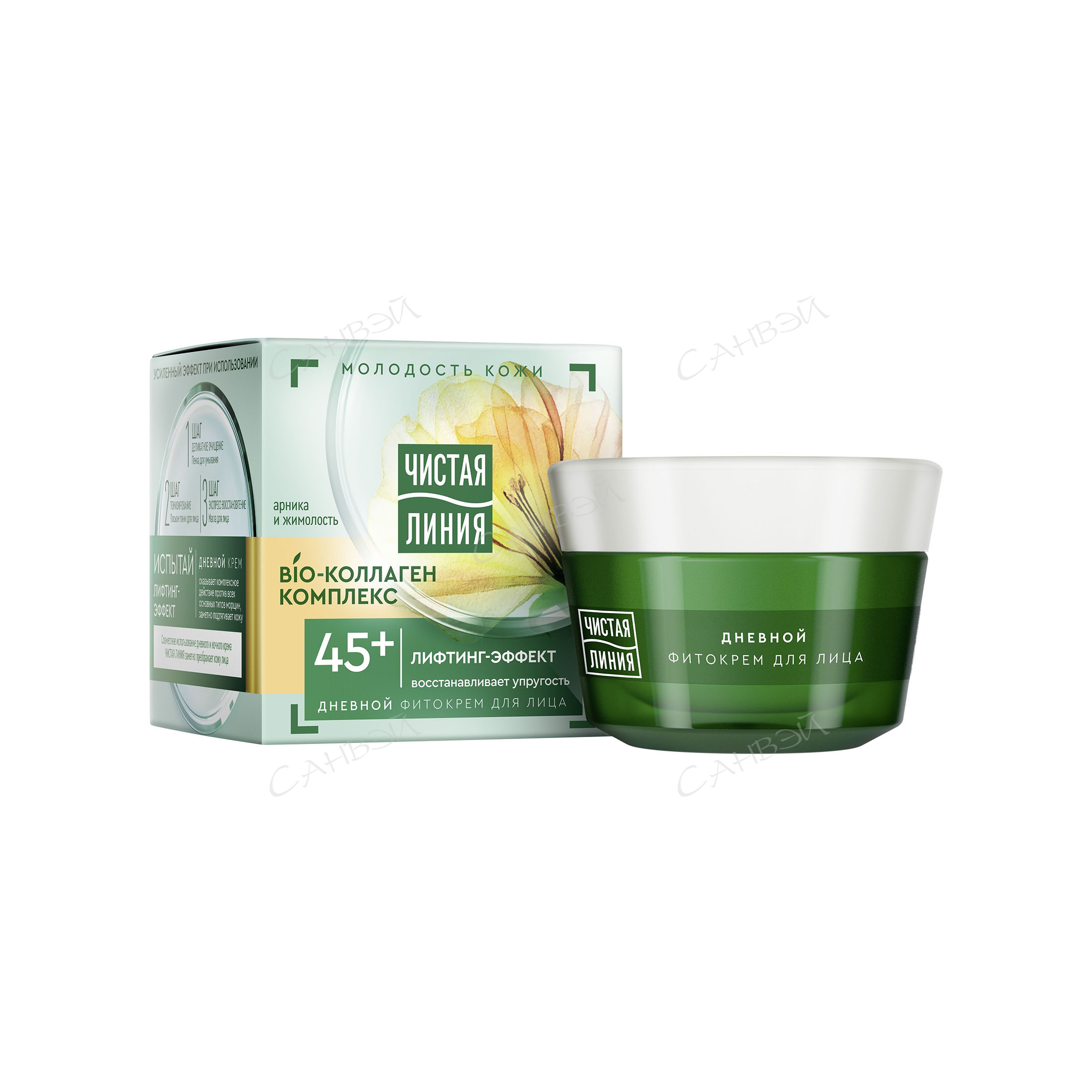 Дневной фито-крем c арникой и жимолостью от 45 лет эффективно увлажняет и питает кожу, разглаживает морщины. Активные натуральные компоненты комплекса Фитоколлаген с ростками и семенами пшеницы, проникая в кожу, разглаживают ее, наполняют энергией и придают сияние.