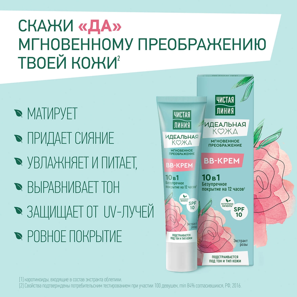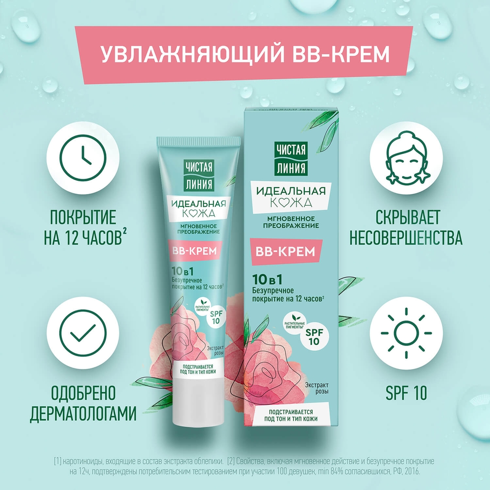 BB-крем 10 в 1 Чистая Линия Идеальная Кожа – это комплексный крем с тонирующим эффектом, сочетающий в себе преимущества ухаживающего и тонального средств.