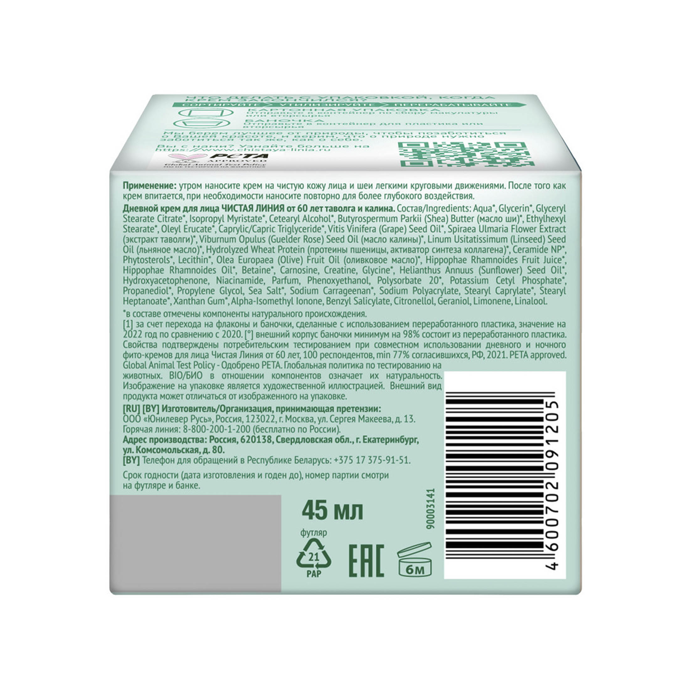 Чистая Линия дневной крем для лица активное омоложение От 60 лет таволга и калина 45 мл в магазине Санвэй. Зрелой коже нужен специальный уход, направленный на сохранение упругости и тонуса кожи. Именно поэтому эксперты лаборатории Чистая линия разработали специальную линейку фито-кремов от 60 лет, которая бережно заботится о зрелой коже, оказывает заметный лифтинг-эффект и освежает кожу.