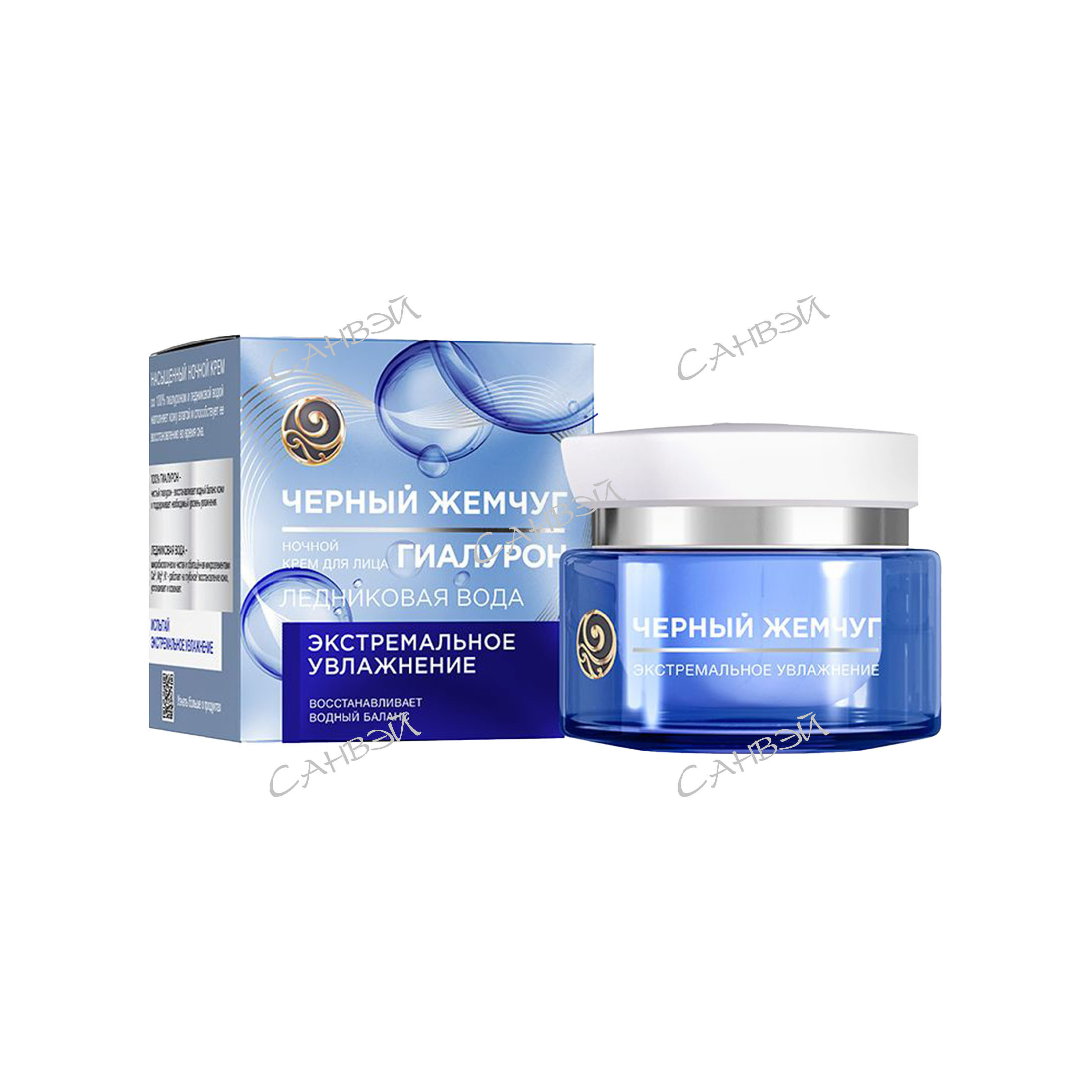 Черный Жемчуг крем для лица Экстремальное увлажнение Ночной 50 мл в интернет-магазине Санвэй - это крем со 100% гиалуроном и ледниковой водой в составе. Ночью кожа нуждается в специальном уходе, который будет полноценно работать во время сна, насыщая ее влагой и активно восстанавливая. Крем насыщает кожу влагой, его влагоудерживающие компоненты не дают ей испаряться с поверхности, поддерживая целостность барьерного слоя. Результат: утром кожа отдохнувшая, сияющая, увлажненная, а тон лица – ровный.
