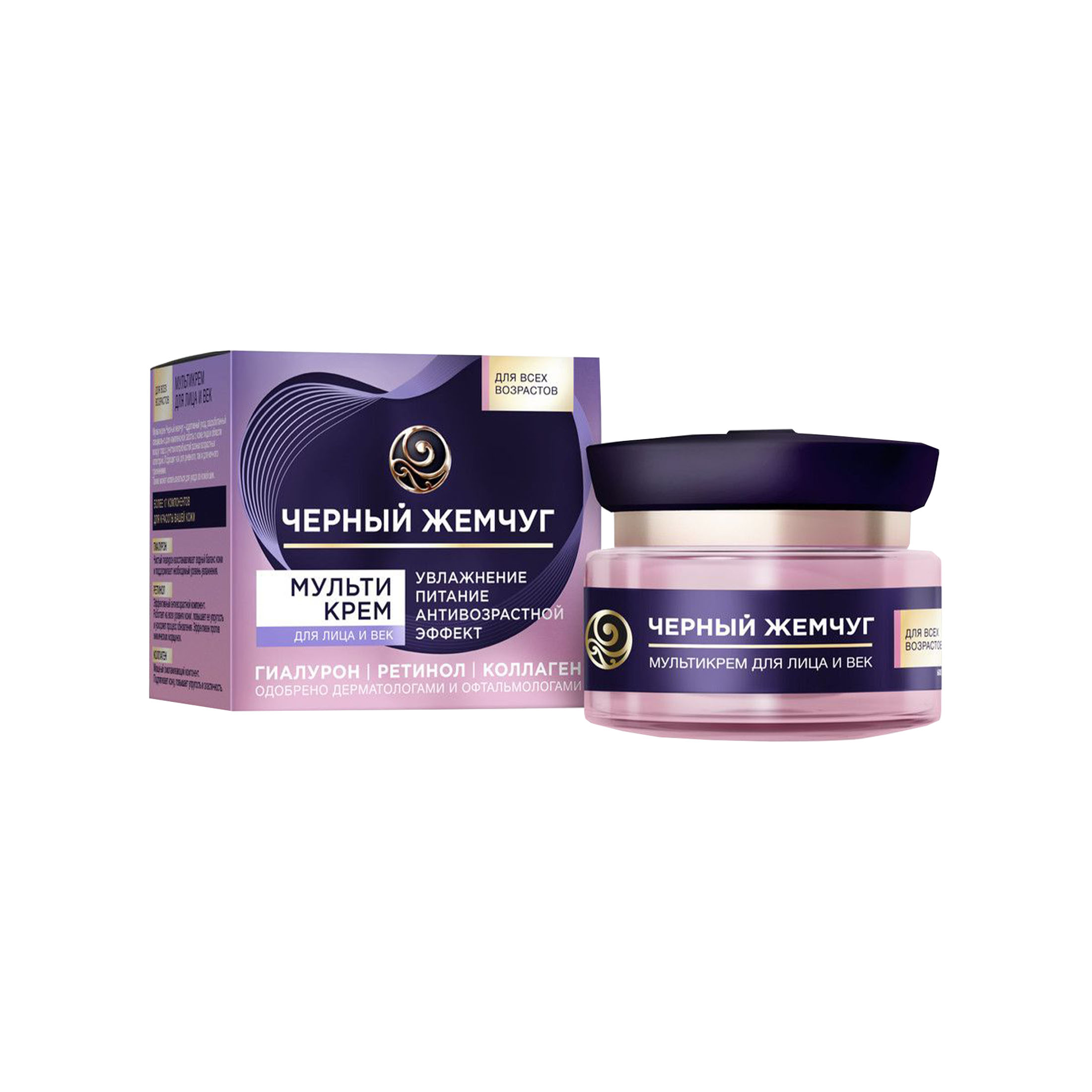 Черный Жемчуг мультикрем для лица и век c ретинолом и гиалуроном, увлажнение и антивозрастной эффект 46 мл в интернет-магазине Санвэй— это современный адаптивный уход, разработанный экспертами бренда специально для восстановления упругости и комплексной заботы о коже лица и области вокруг глаз. Он разработан с учетом потребности кожи разных возрастов и подходит как для дневного, так и для ночного ухода.