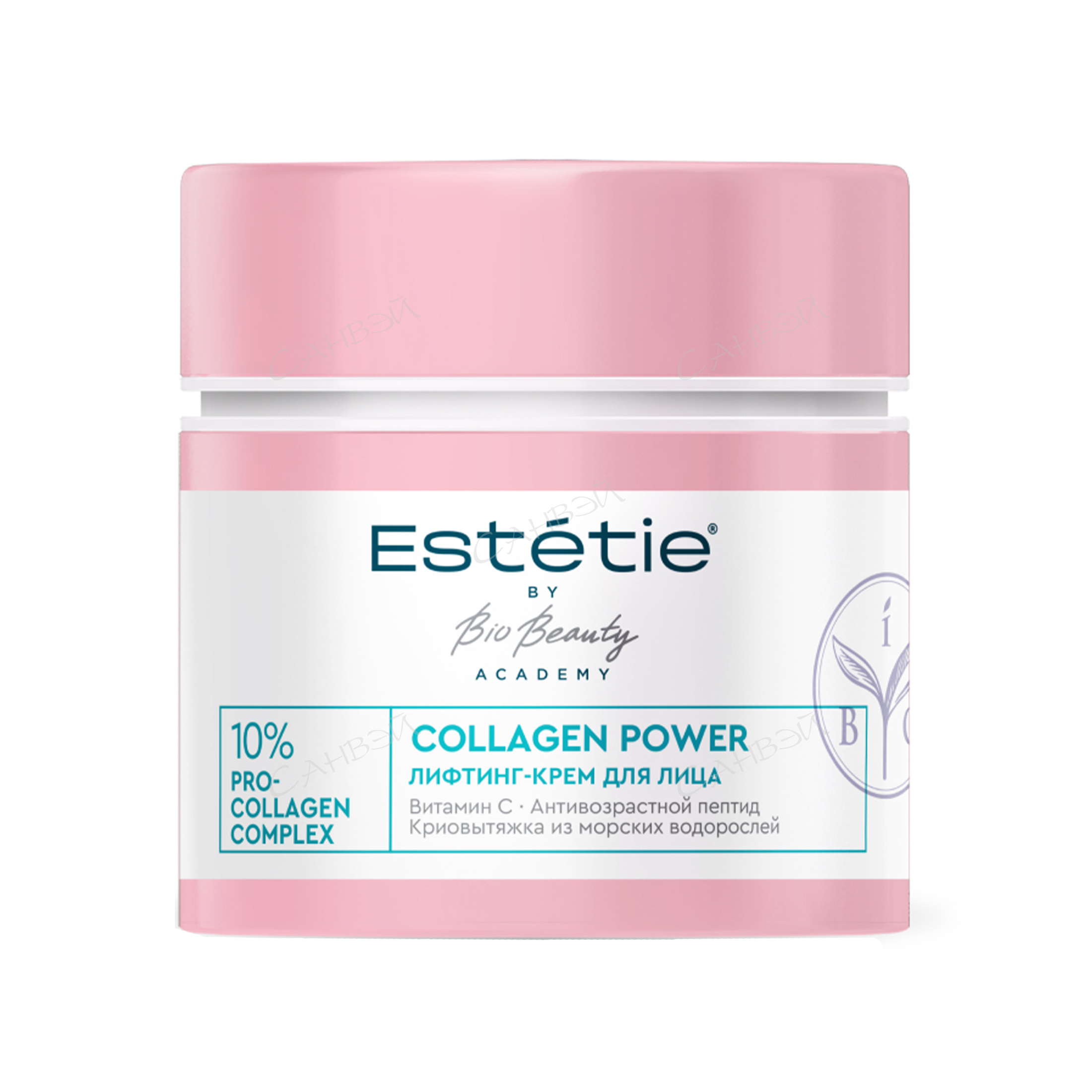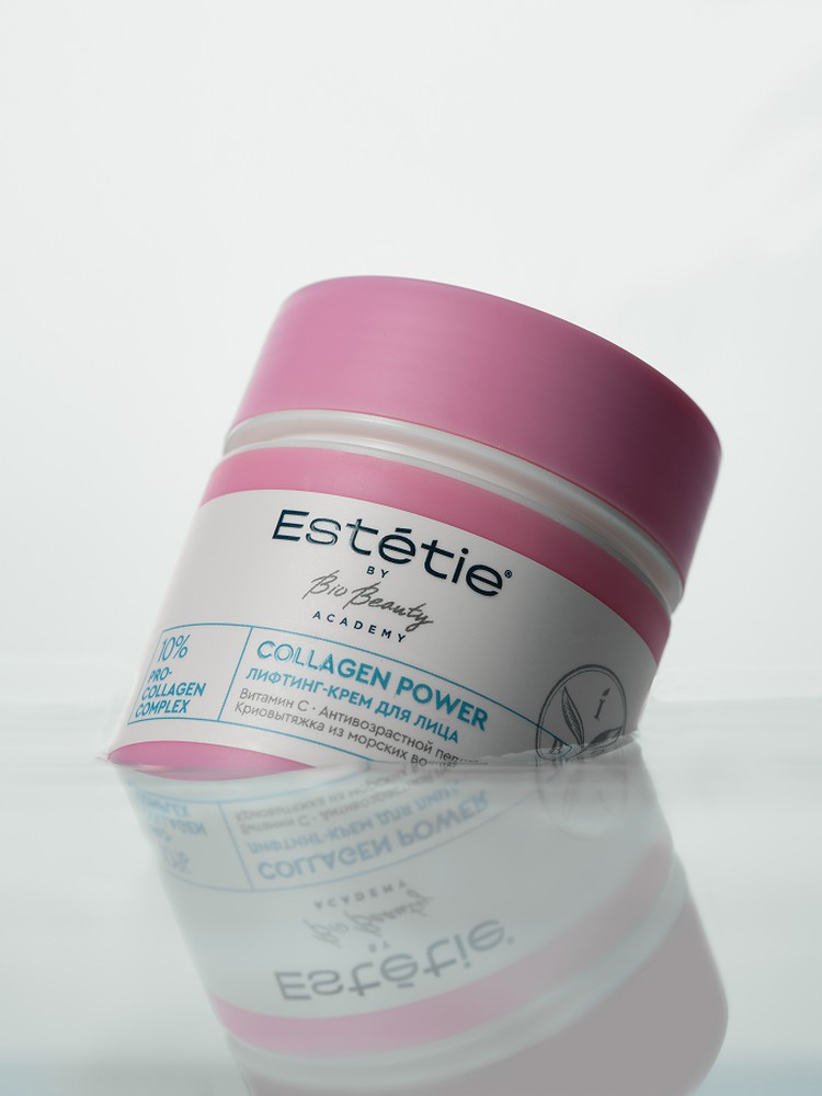 Estetie Лифтинг-крем для лица Collagen Power 45 мл благодаря технологичной формуле с активными пептидами и протеинами крем обеспечивает выраженный эффект лифтинга и корректирует возрастные изменения кожи. Проколлаген-комплекс высокой концентрации (10%), антивозрастной пептид и трипептид меди подтягивают и разглаживают кожу, уменьшая видимость возрастных и мимических морщин. Биодоступный витамин С - мощный антиоксидант - наполняет кожу энергией и возвращает ей сияние, а криовытяжка из морских водорослей глубоко увлажняет и активирует регенерацию клеток.