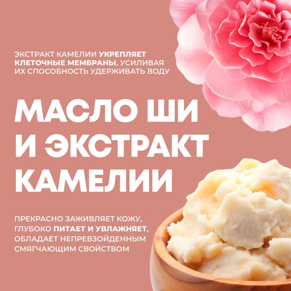 Формула продукта также включает в себя гиалуроновую кислоту и масло ши, которые способствуют интенсивному питанию, помогает удерживать влагу в клетках, что положительно влияет на упругость и эластичность кожи.