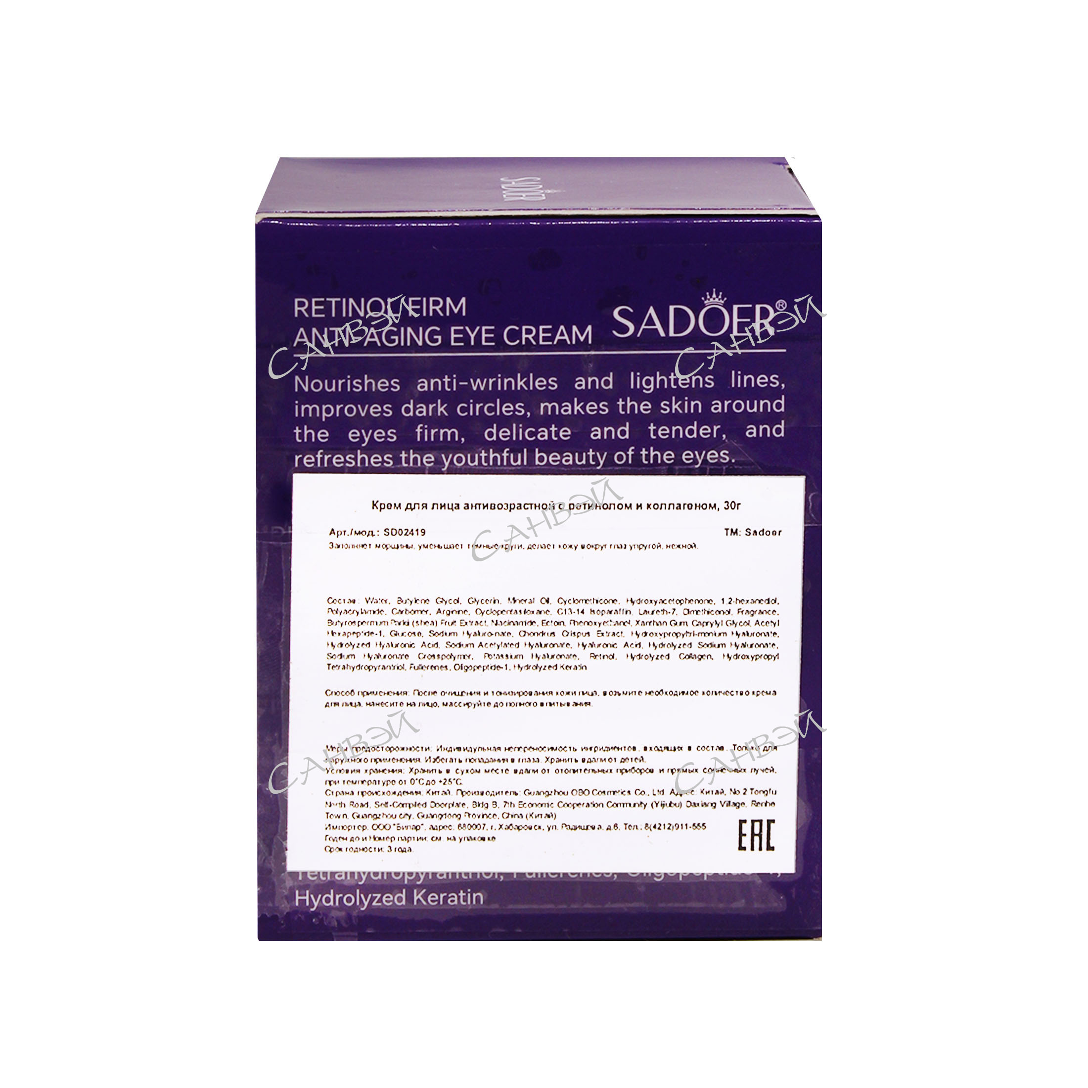 Антивозрастной крем для глаз и лица Sadoer с ретинолом и коллагеном 30 г из Санвэй - интенсивно питающий и разглаживающий уход, направленный на борьбу с признаками старения и улучшение упругости кожи.