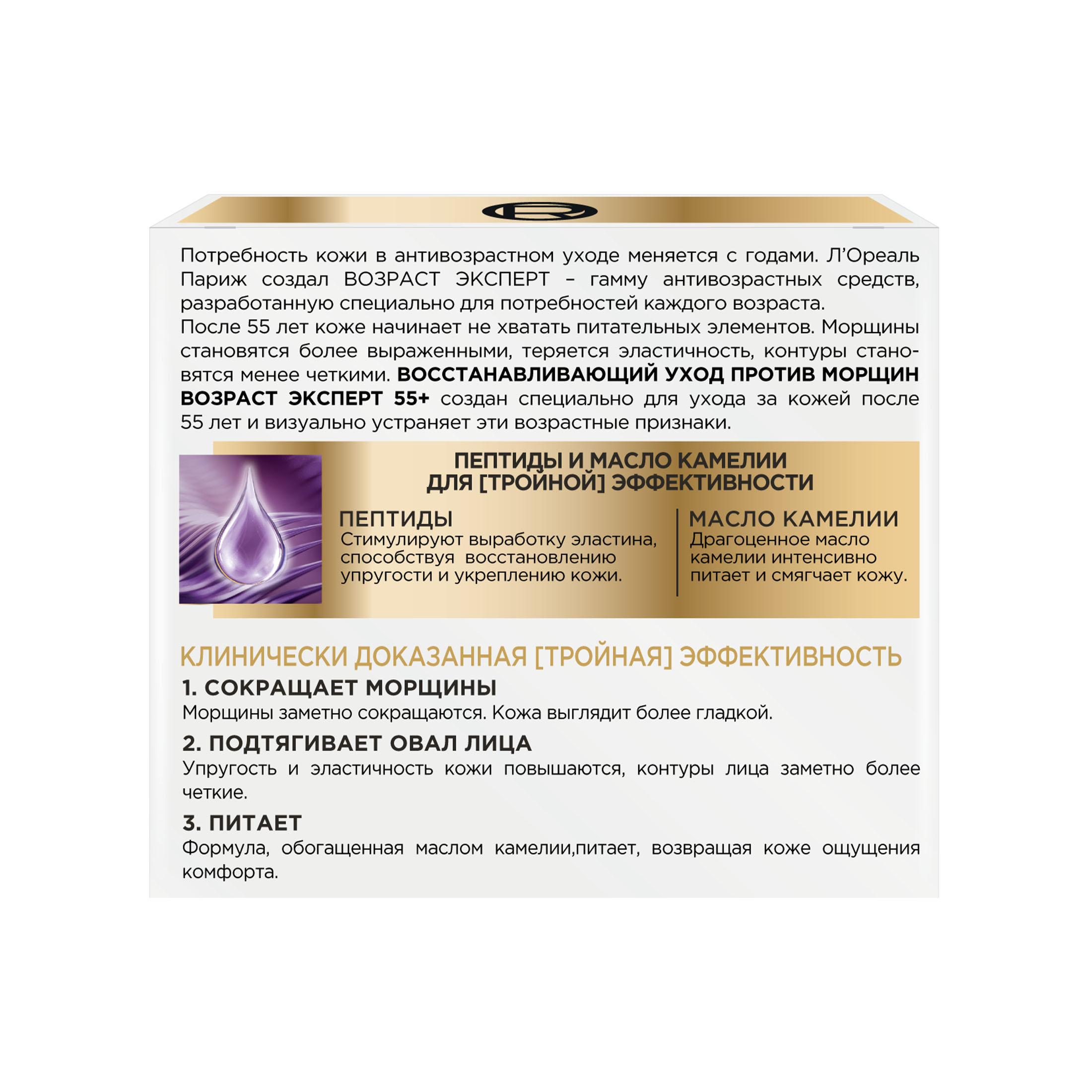 Восстанавливающий уход против морщин Возраст Эксперт 55+ создан специально для ухода за кожей после 55 лет и визуально устраняет возрастные признаки.